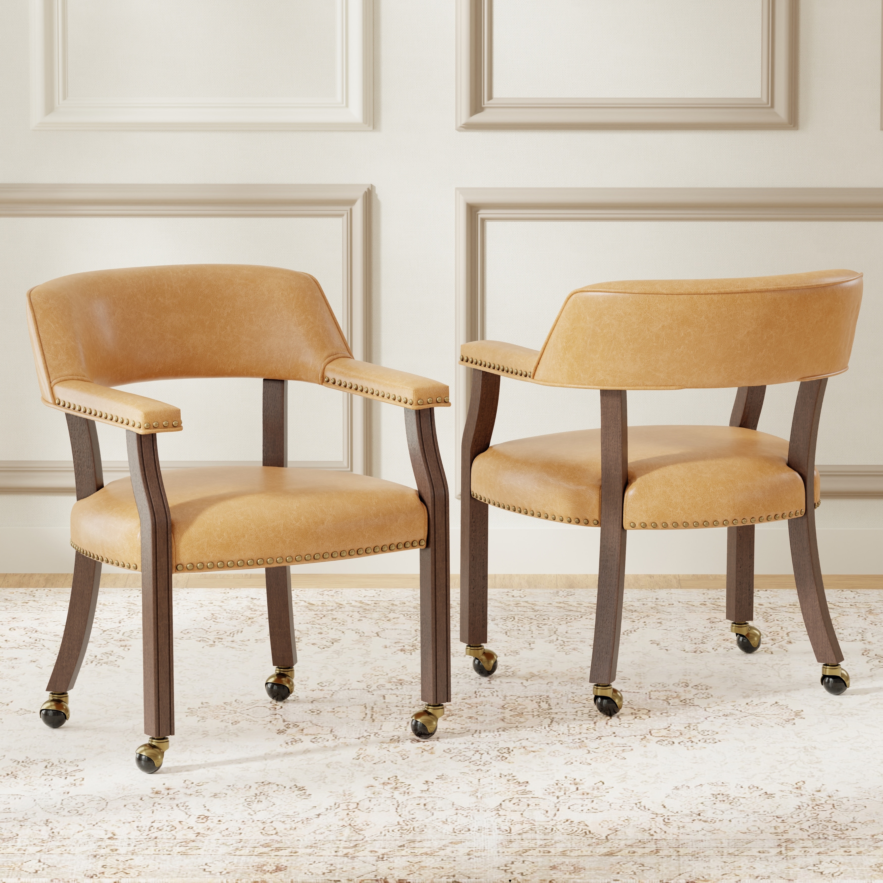 Mid-Century Design Home Office Chair with Padded Seat,Leather Upholstery Swivel Rolling Desk Chair for Home Office