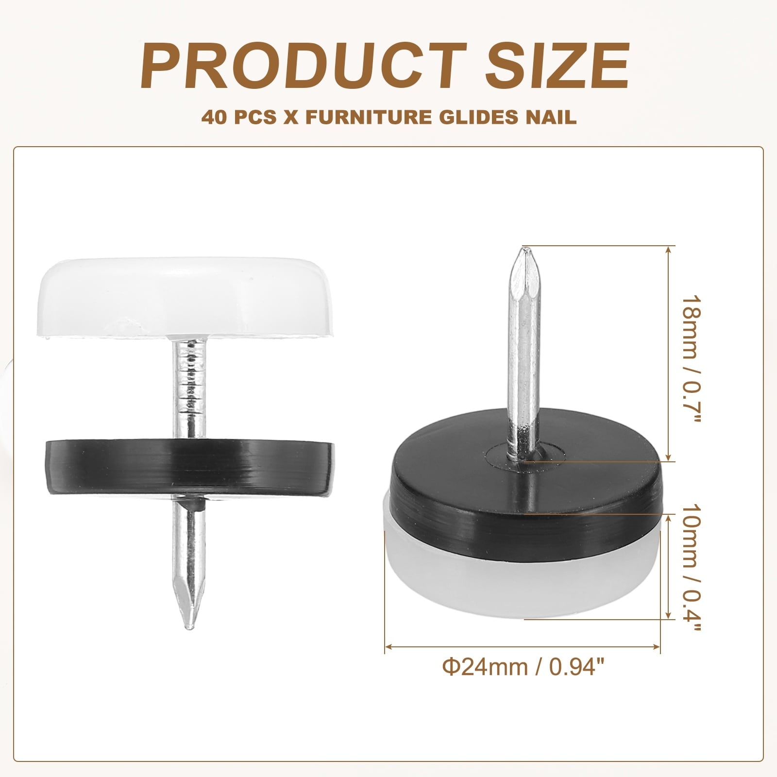 0.6" Dia Chair Slides 40 Pcs Nail on Furniture Glides Floor Protector, White