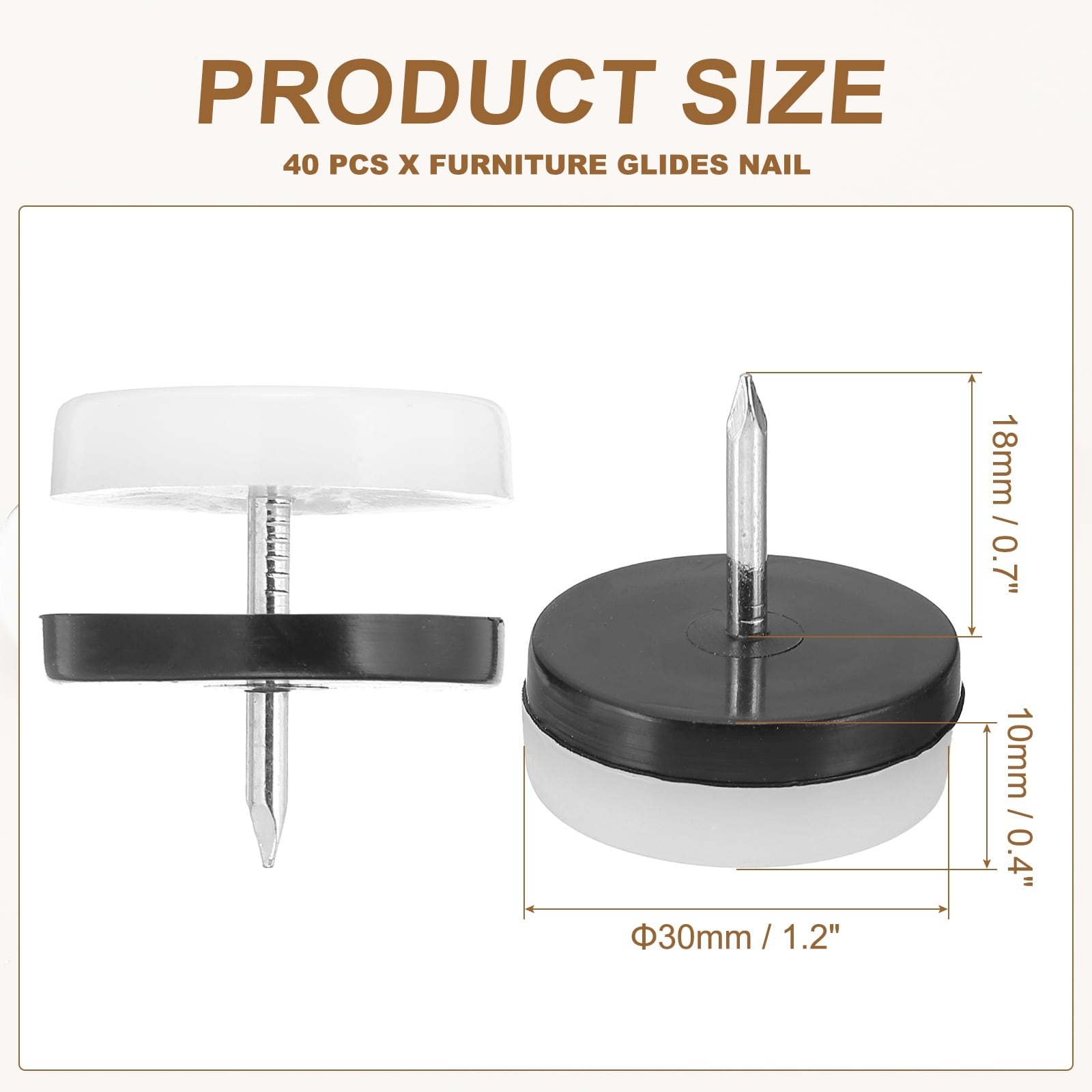 0.6" Dia Chair Slides 40 Pcs Nail on Furniture Glides Floor Protector, White