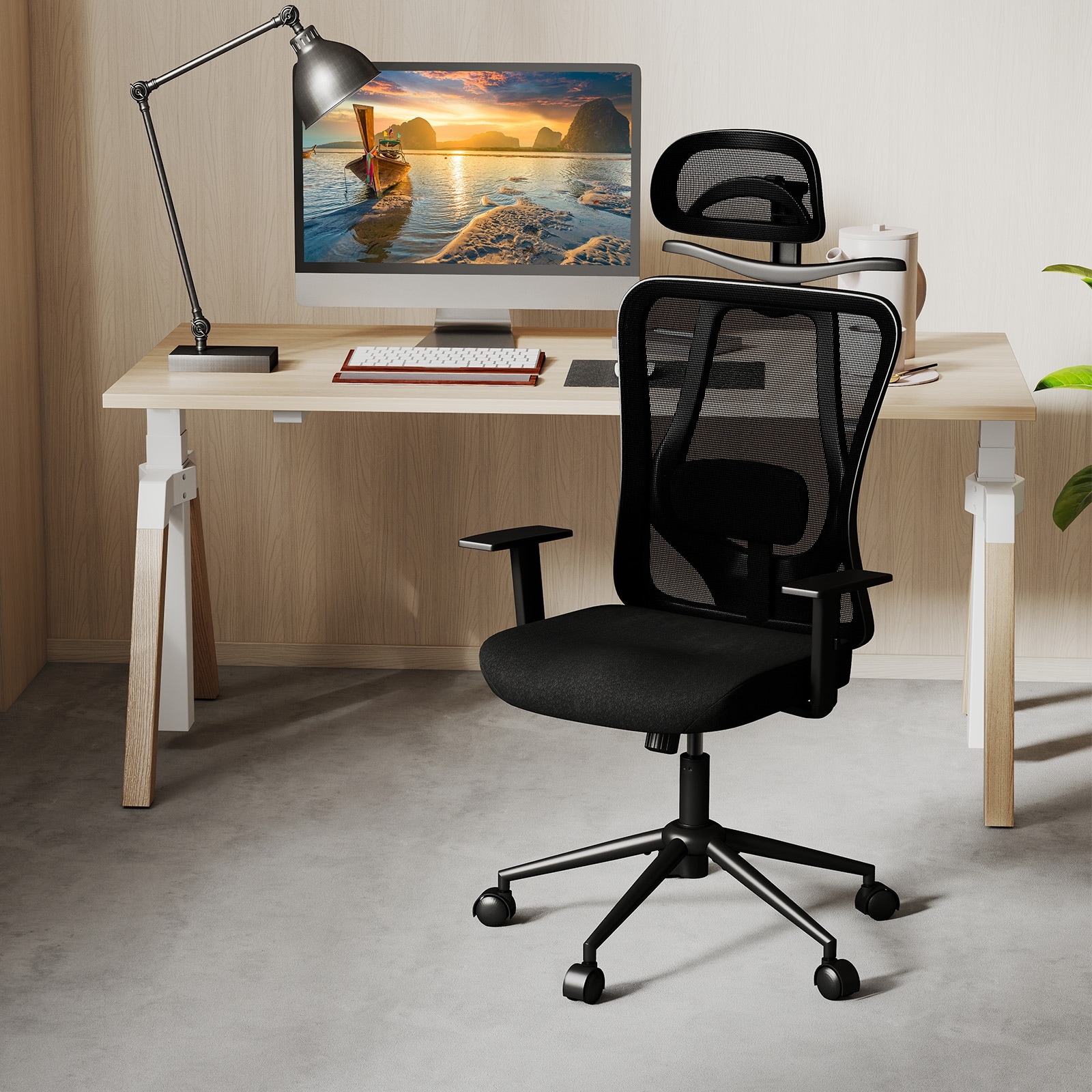 Ergonomic Mesh Office Chair with Adjustable Headrest Lumbar Support and Reclining Back Black Swivel Computer Desk Chair