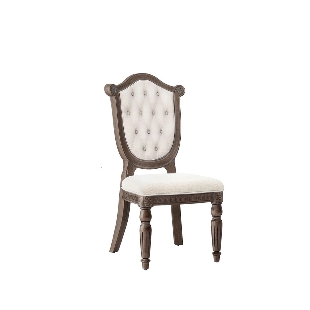 Rustic Style 2pc Side Chair Diamond Tufted Chair Back Fluted Front Legs Weather Oak And Beige Finish Dining Room