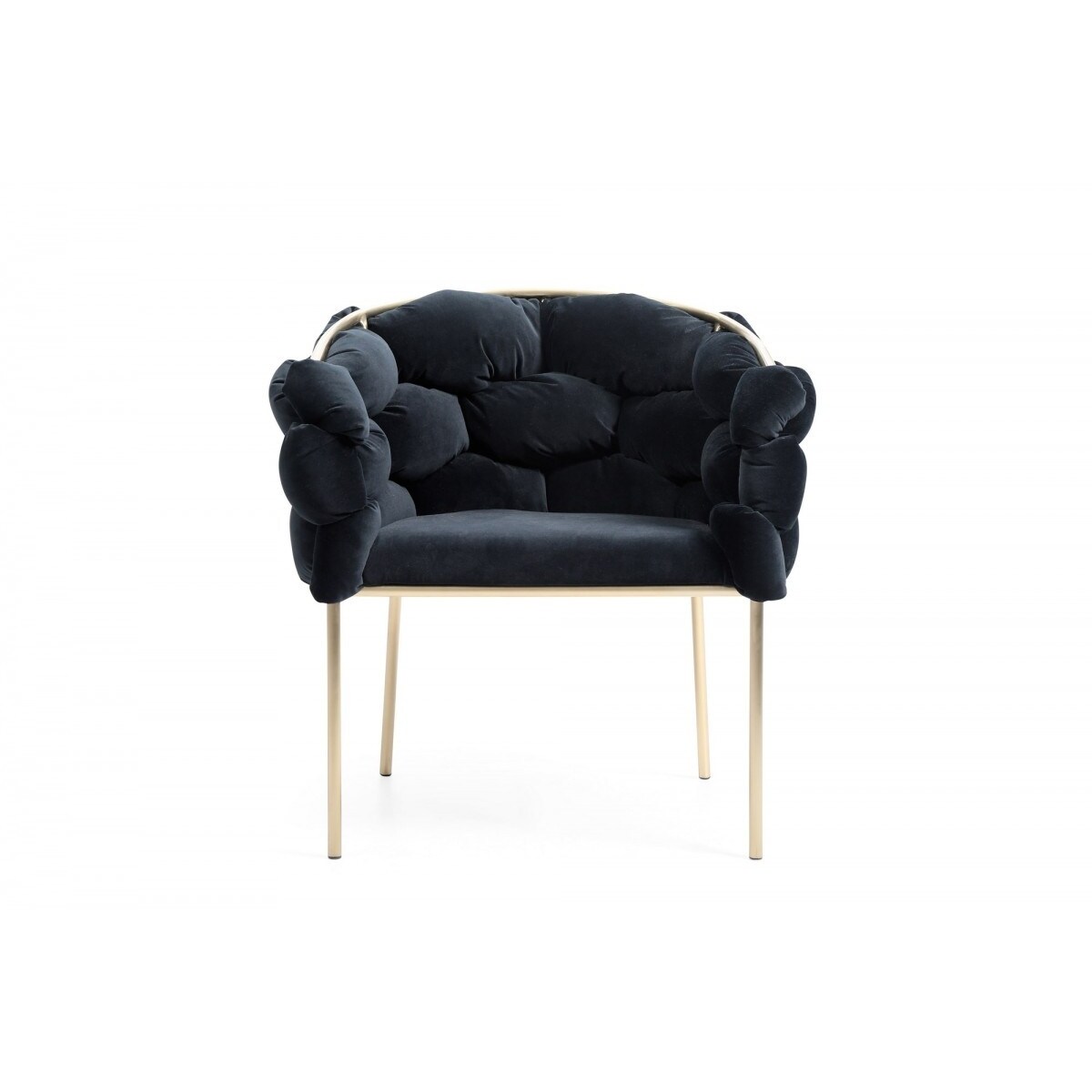Modern Velvet Upholstered Arm Dining Chair with Brass Metal Legs and Solid Back for Living Room or Office - 32”H x 26”W x 23”D