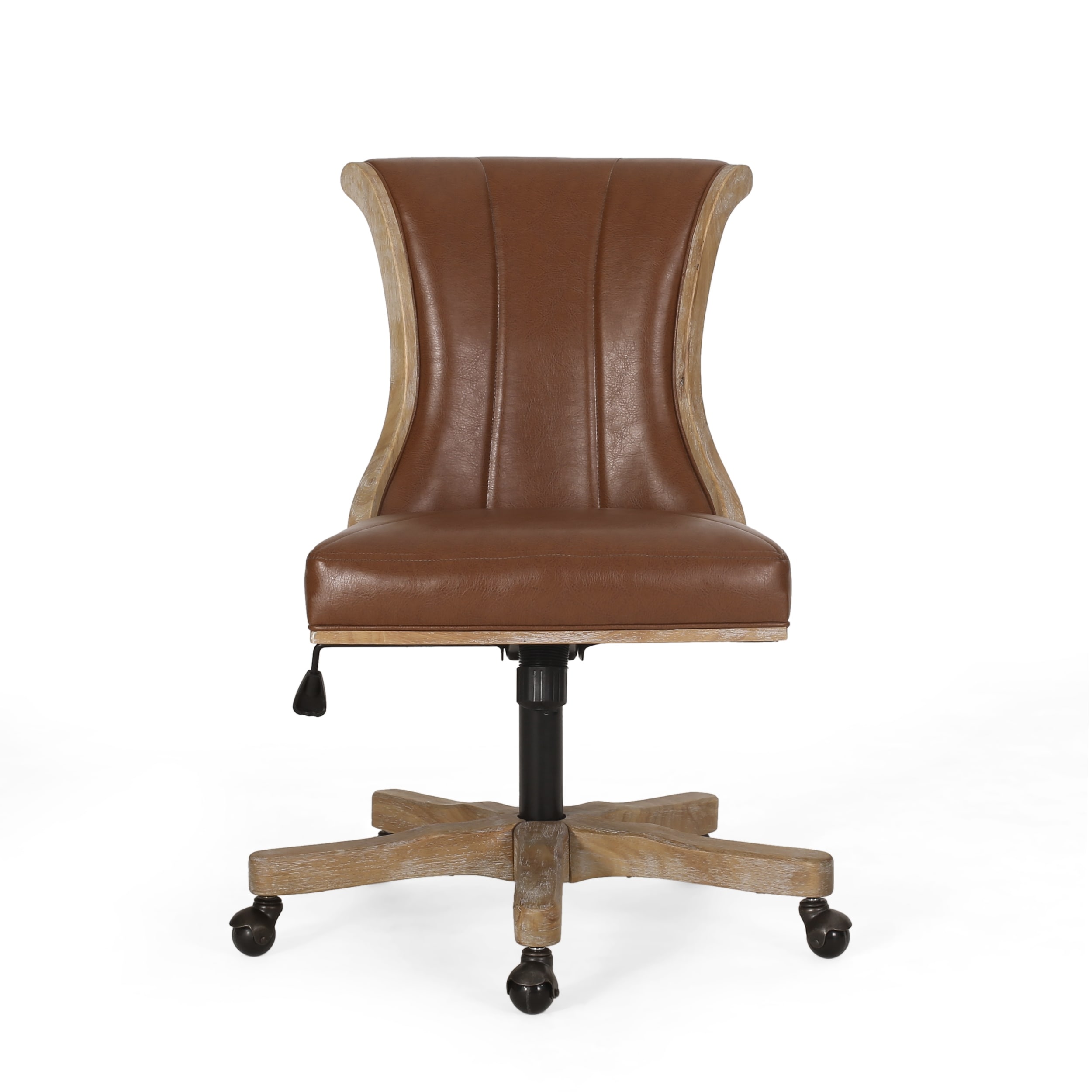 Modern Office Desk Chair | Upholstered PU Leather Ribbed Mid Back with Metal Frame | Adjustable Height, Tilt Lock