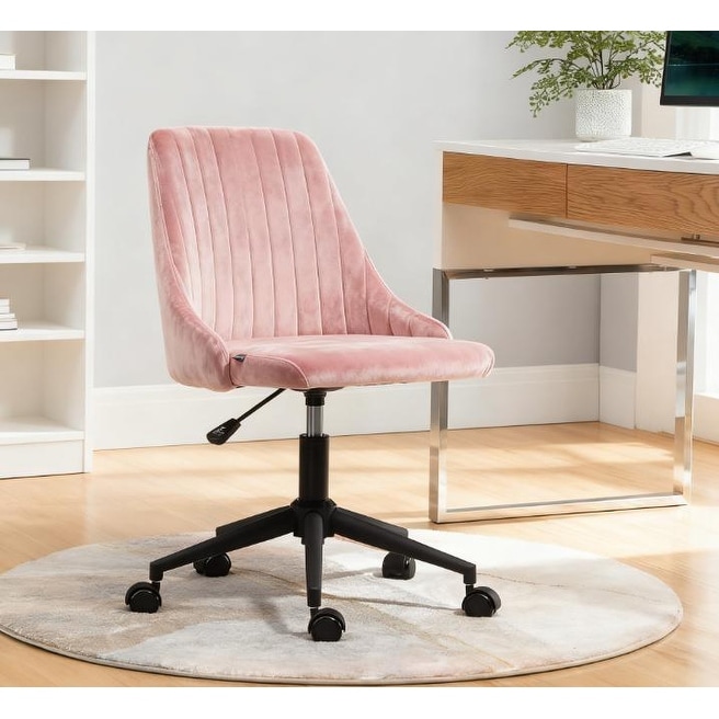 Pink Velvet Office Chair, Adjustable Height for Home Office, Cozy Comfort & Chic Aesthetic