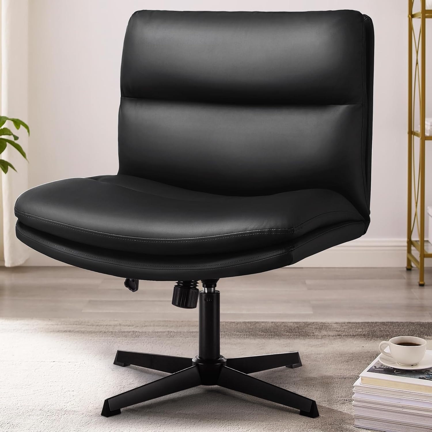BOSSIN Criss Cross Chair Armless Office Desk Chair No Wheels,PU Leather Padded Modern Swivel Vanity Chair office chair