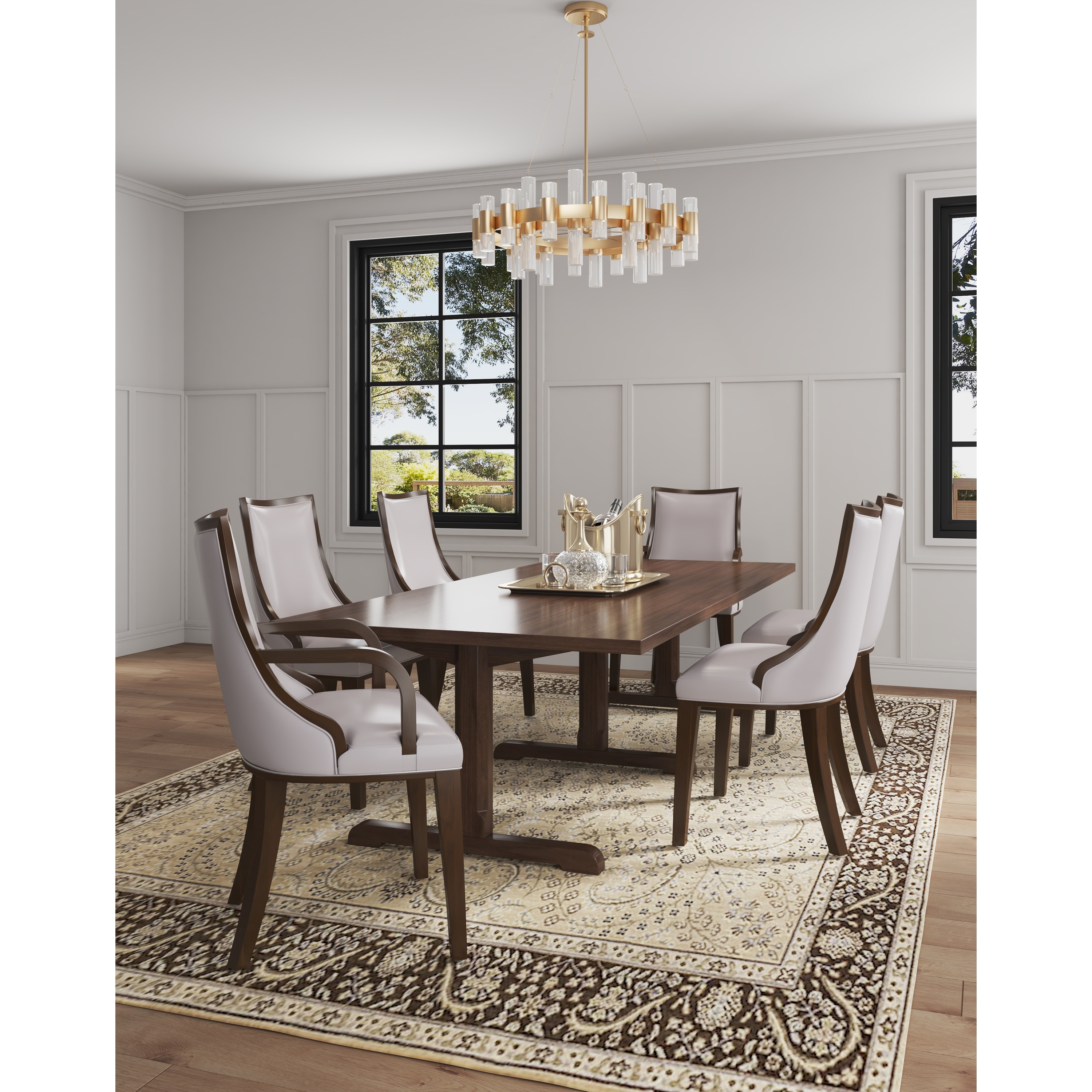 Grand Wood Upholstered Armchair in Light Gray