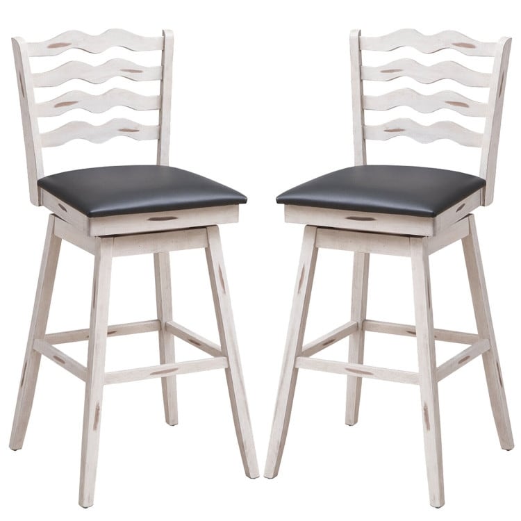 360° Swivel Bar Stools with Rubber Wood Frame and Ergonomic Backrest and Footrest