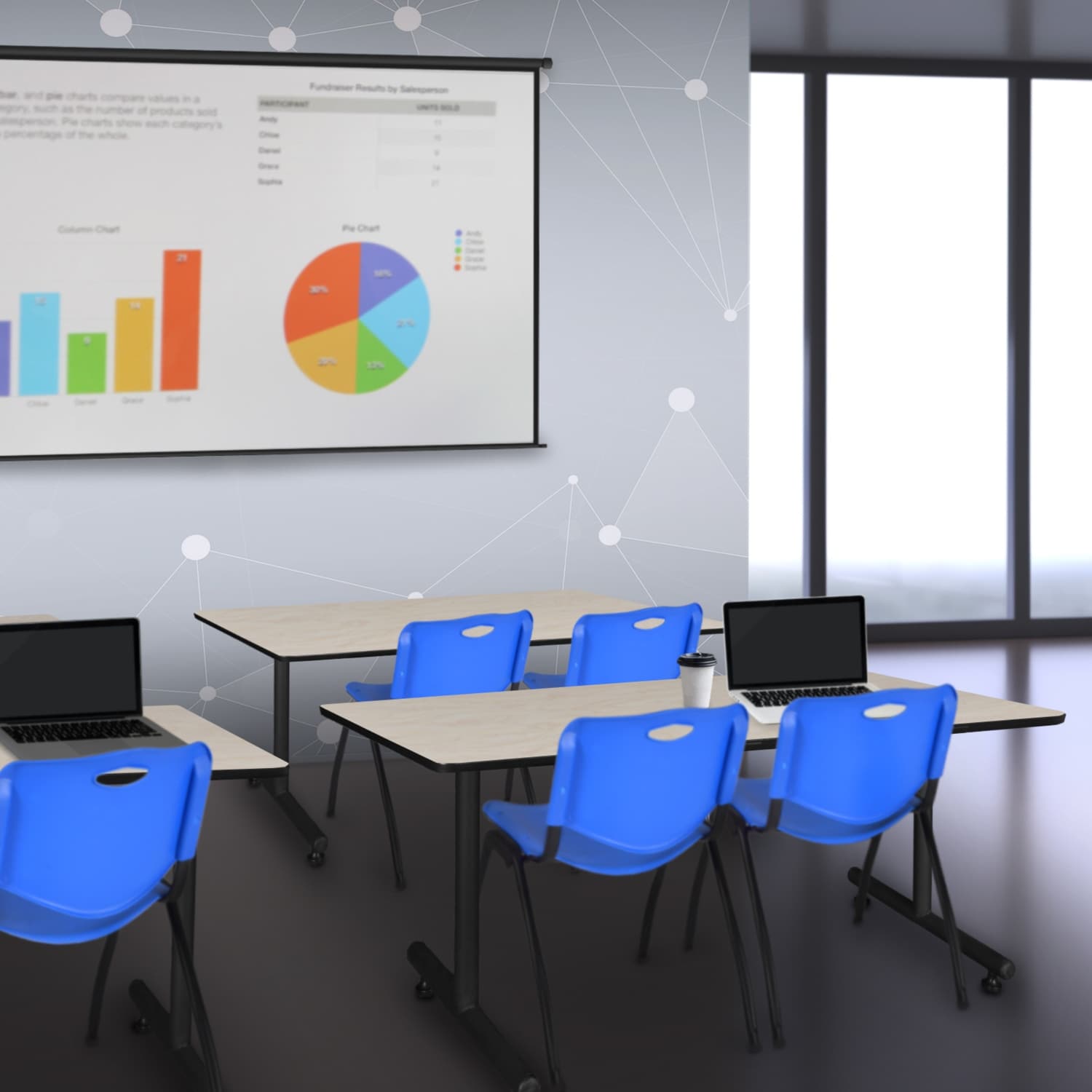 48" x 24" Training Table- Maple & 2 'M' Stack Chairs- Blue - 48 x 24 inches