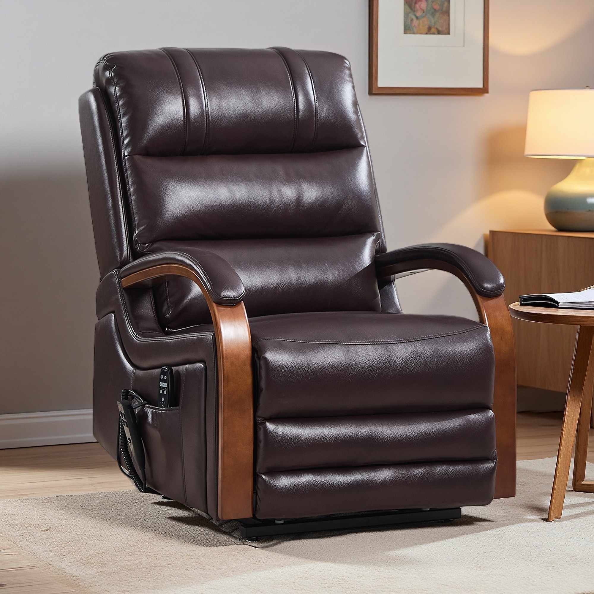 Dual Motor Infinite Position Lift Recliner Chair with Solid Wood Armrests, Heat Massage, and Heavy-Duty Motion Mechanism