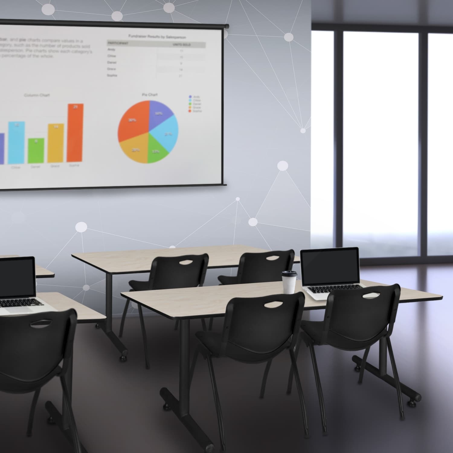 60" x 24" Training Table- Maple & 2 'M' Stack Chairs- Black - 60" x 24"