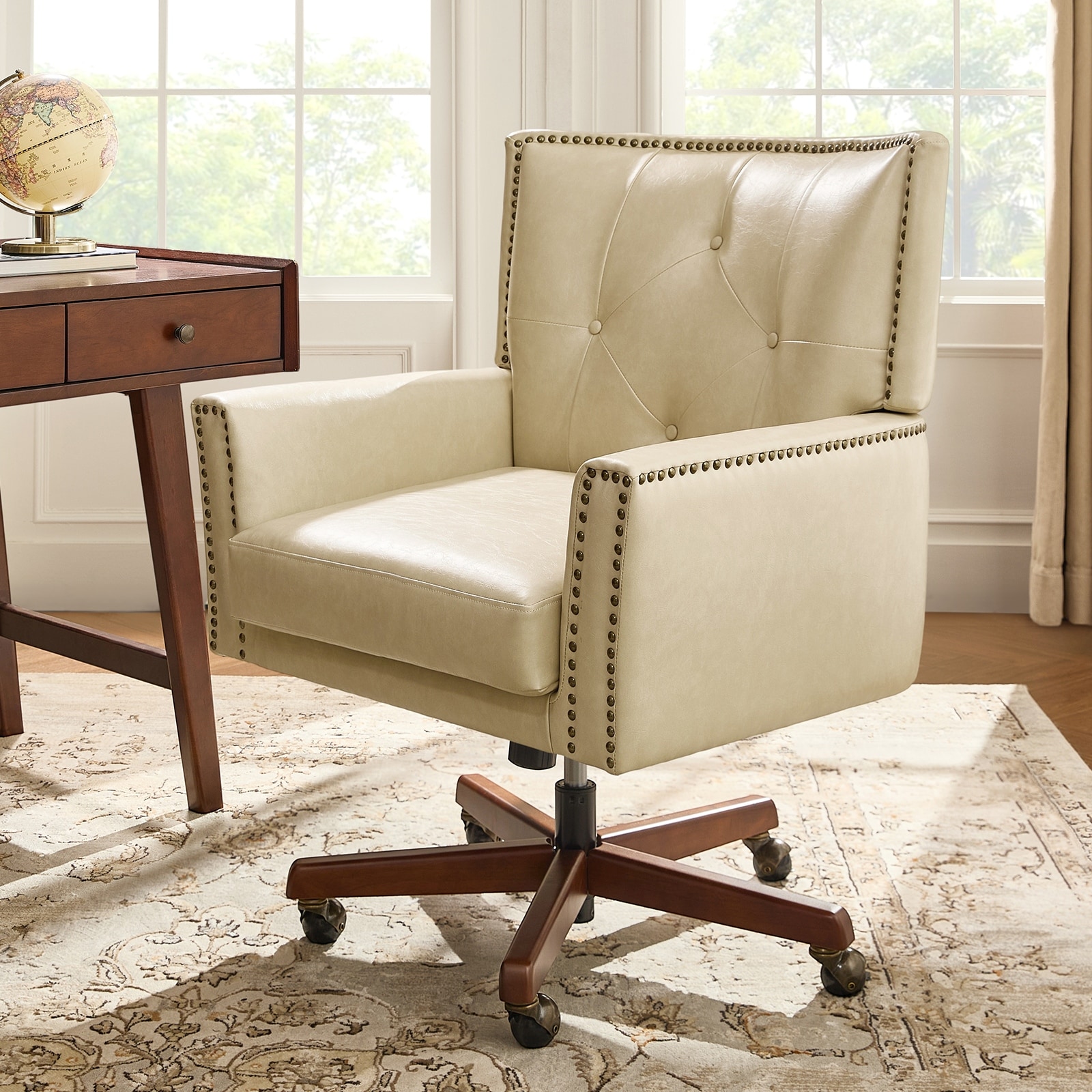 Meroy Transitional Leather Solid Wood Office Chair By HULALA HOME