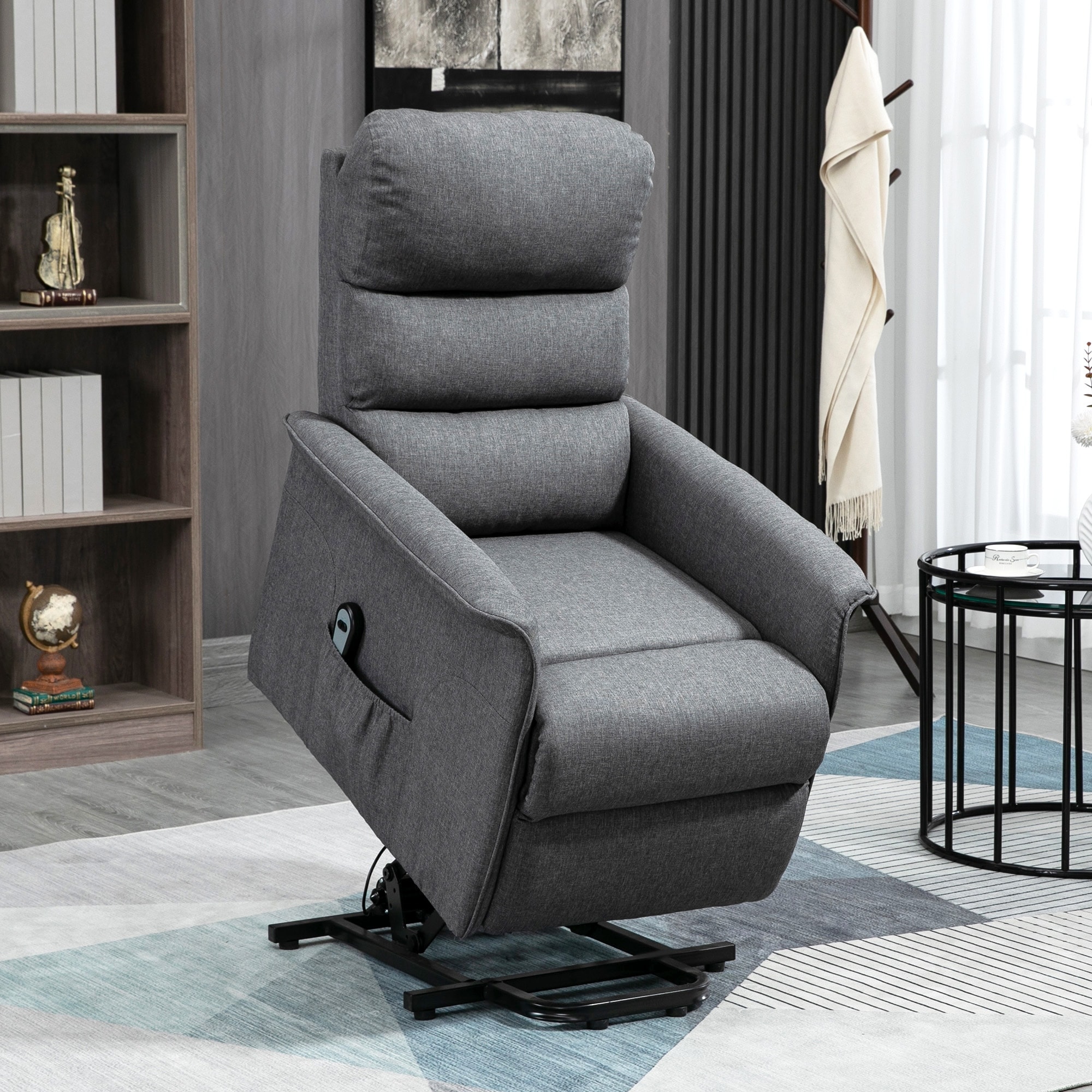 Electric Power Lift Recliner Chair for Elderly, Fabric Lift Chair with Remote Control, Side Pockets