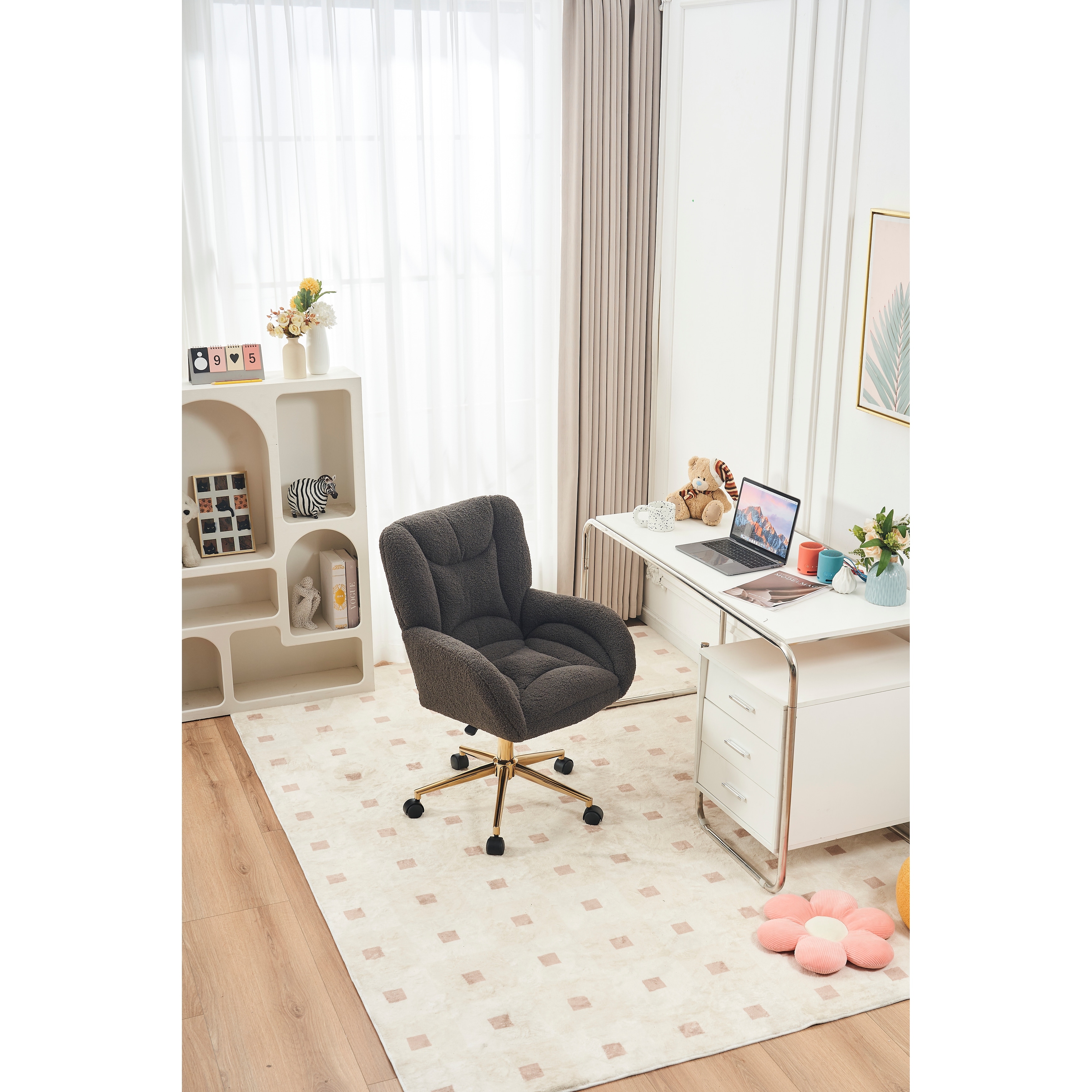 Velvet Mid-Back Swivel Office Chair with Scallop Shell Design, Adjustable Height for Home Office or Bedroom Vanity Desk