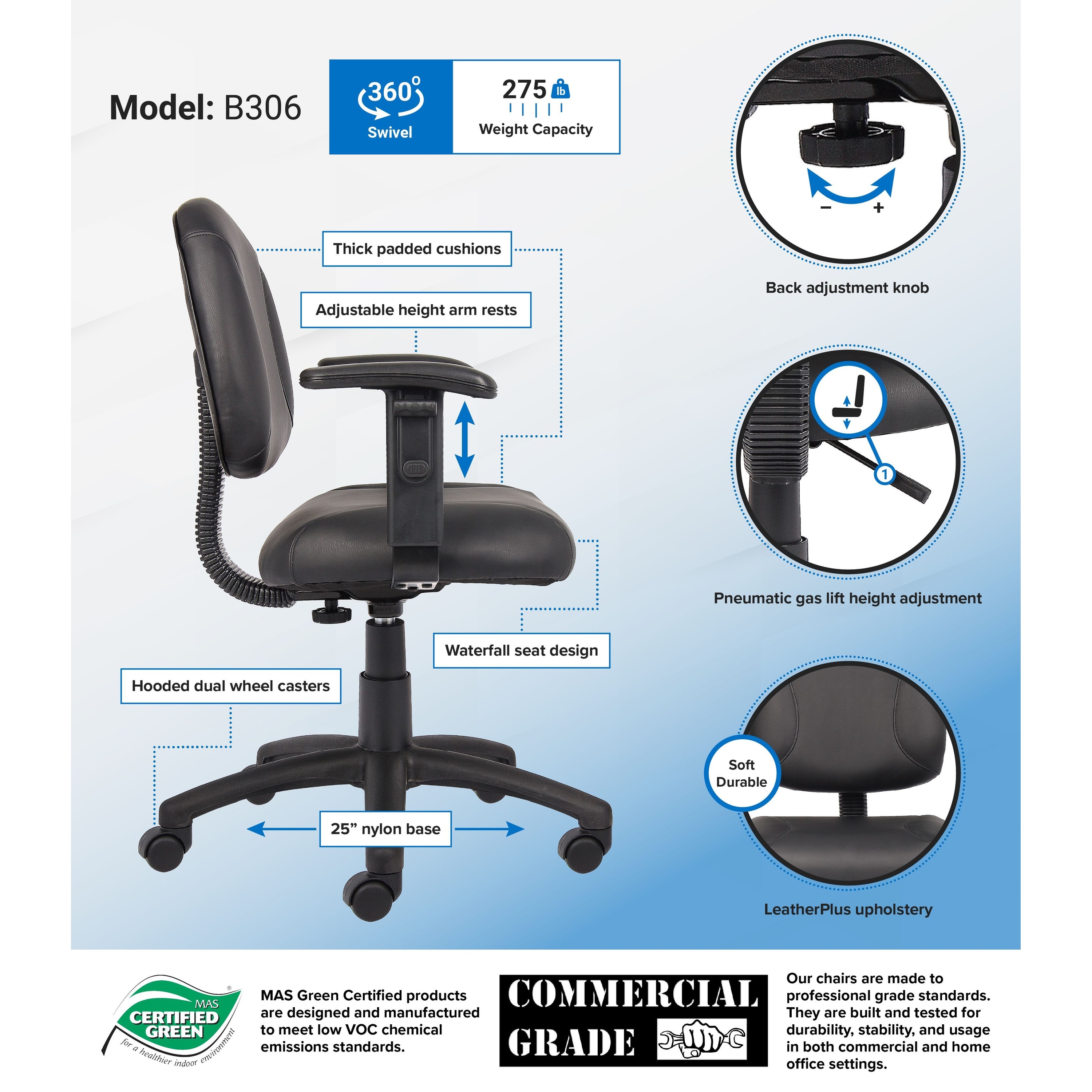 Boss Black Posture Chair with Adjustable Arms
