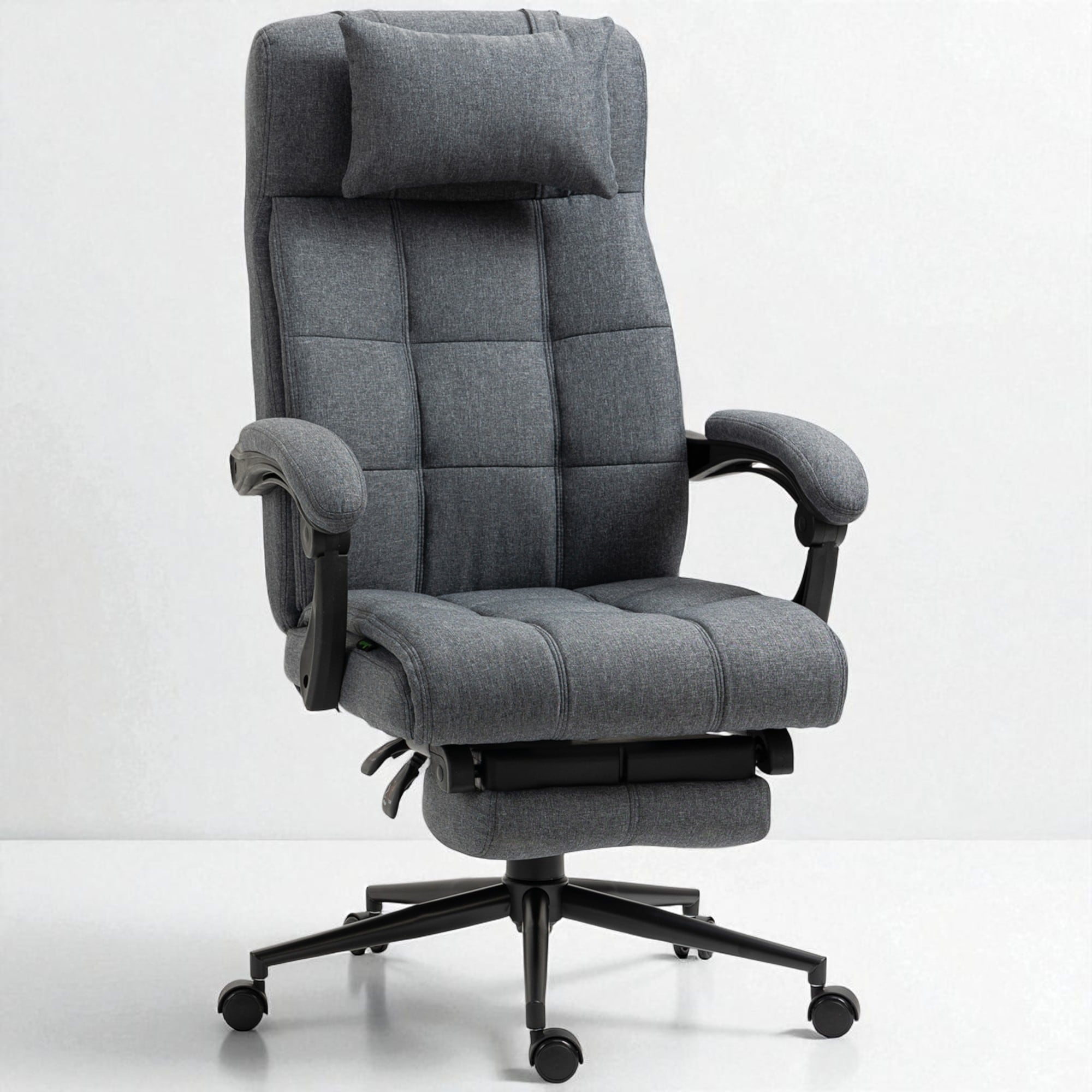 High Back Executive Office Chair with Linen Fabric, Reclining Back, Footrest, Headrest, Adjustable Height & Swivel Base