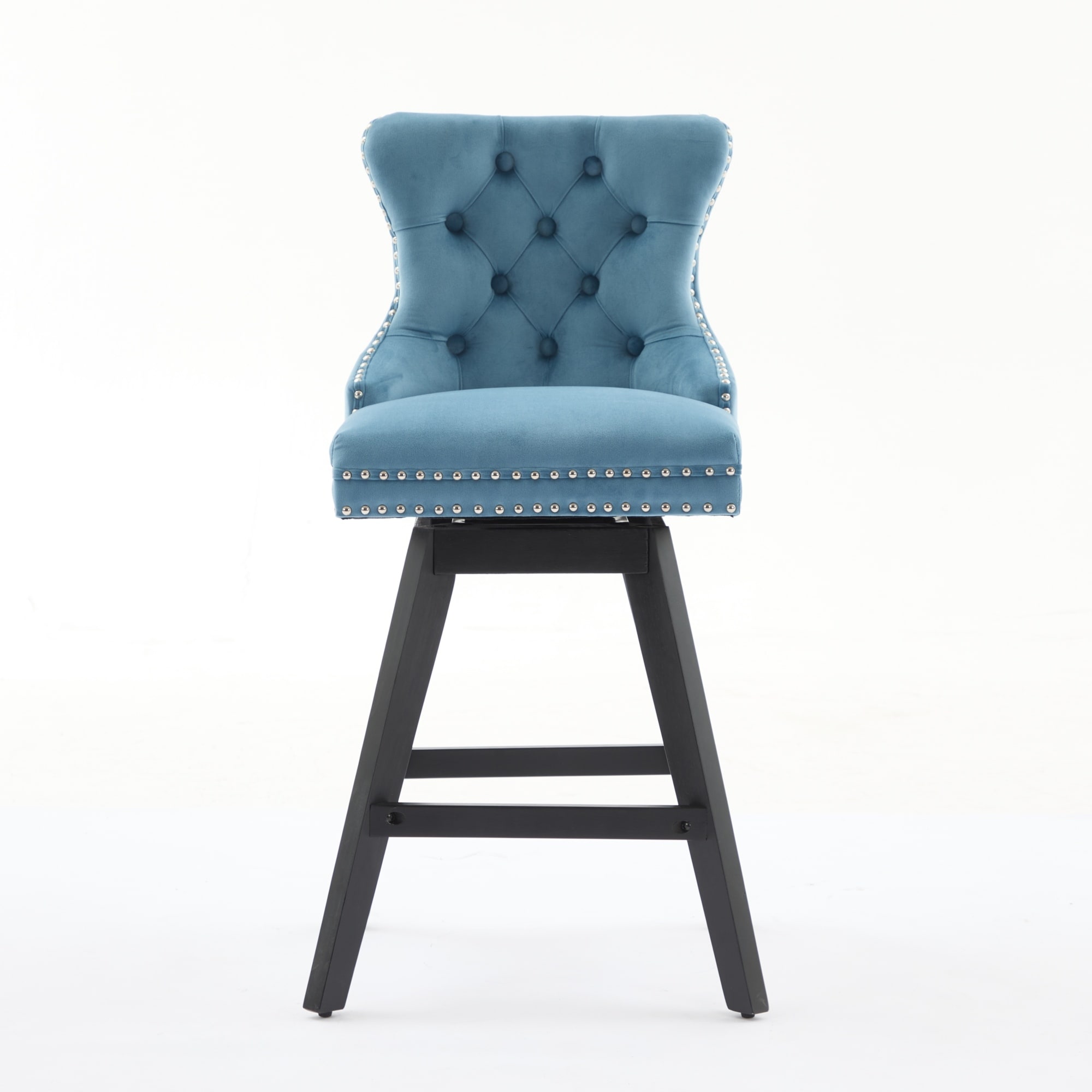 Swivel Velvet Barstool 2PC, Button Tufted, Wood Legs