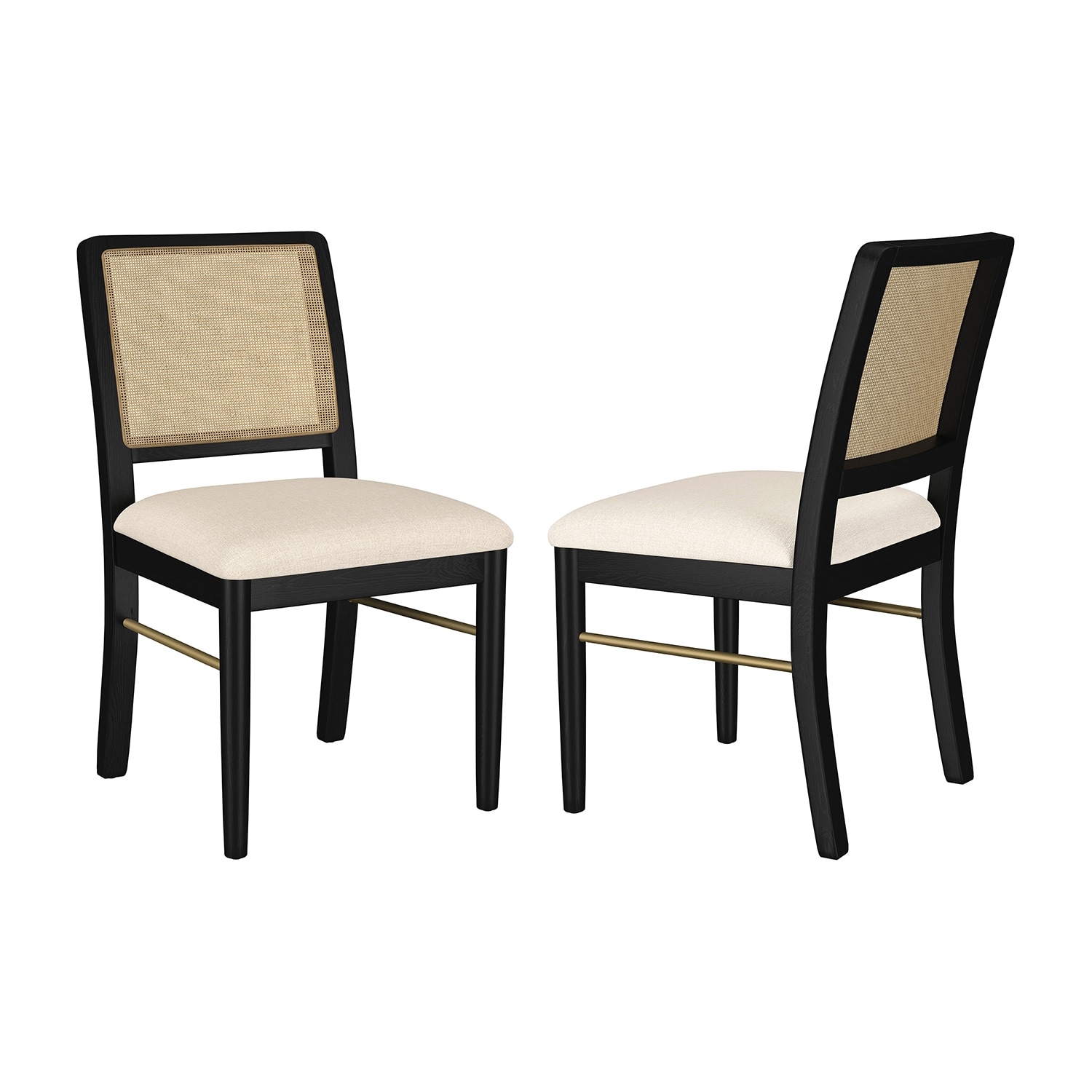 Set of 2 Upholstered Dining Side Chairs with Cane Backrest
