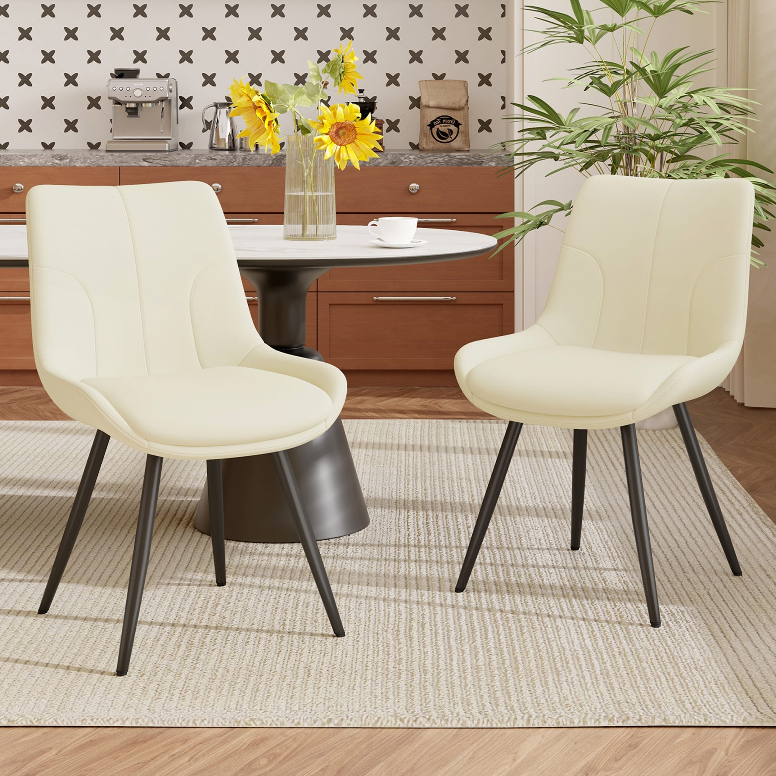 Modern Faux Leather Dining Chairs Set of 2 with Thick Cushion and Metal Legs for Comfortable Seating