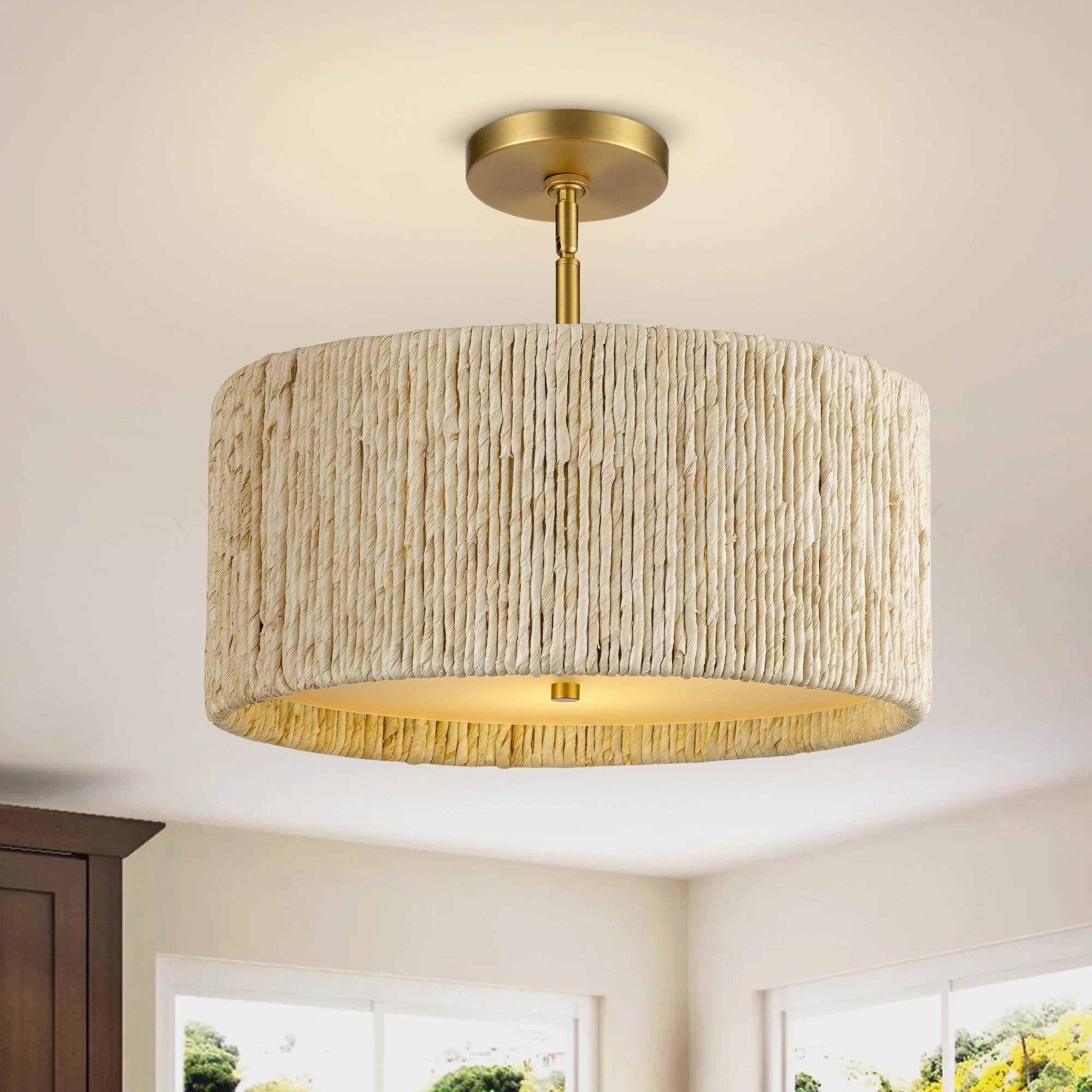 Starsky 4-Light 23inch Rattan Tiered Bohemian Light Fixture Drum Chandelier