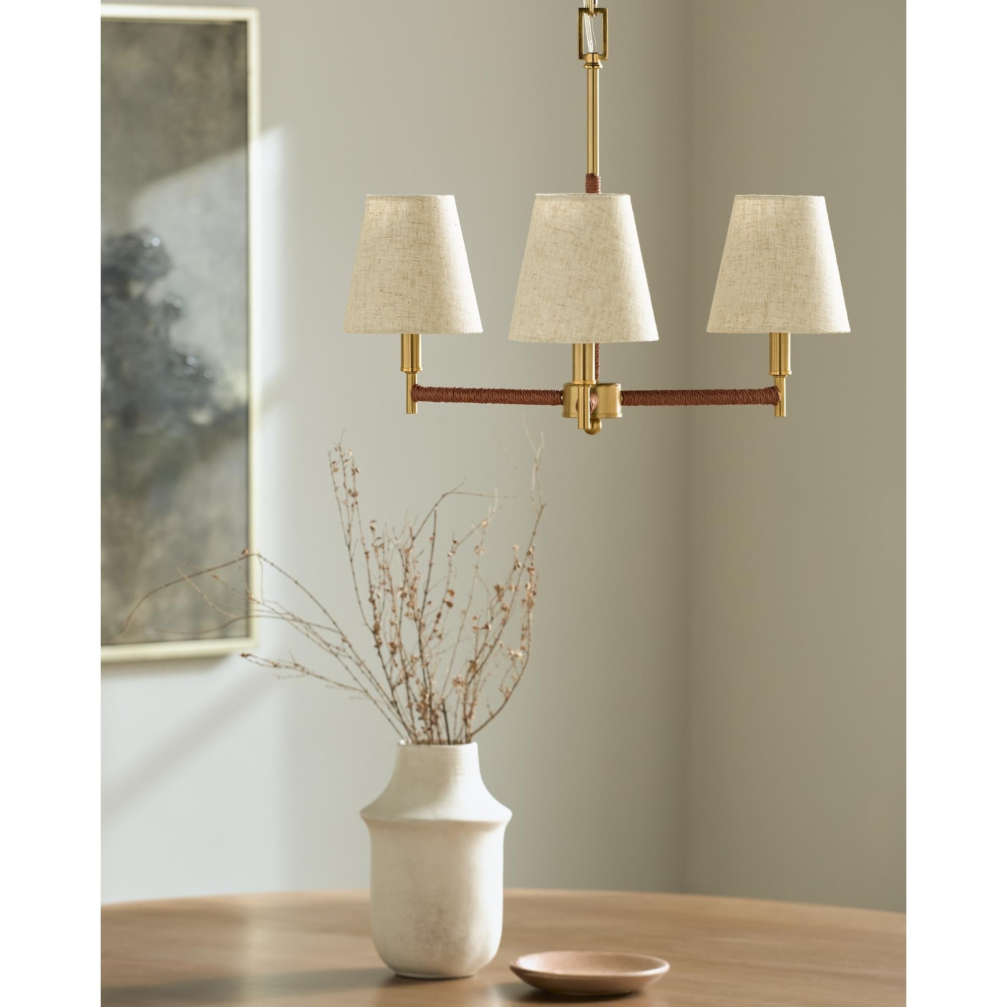 6-Light Brass Chandelier With A Nature Rattan Waved Basket Shade