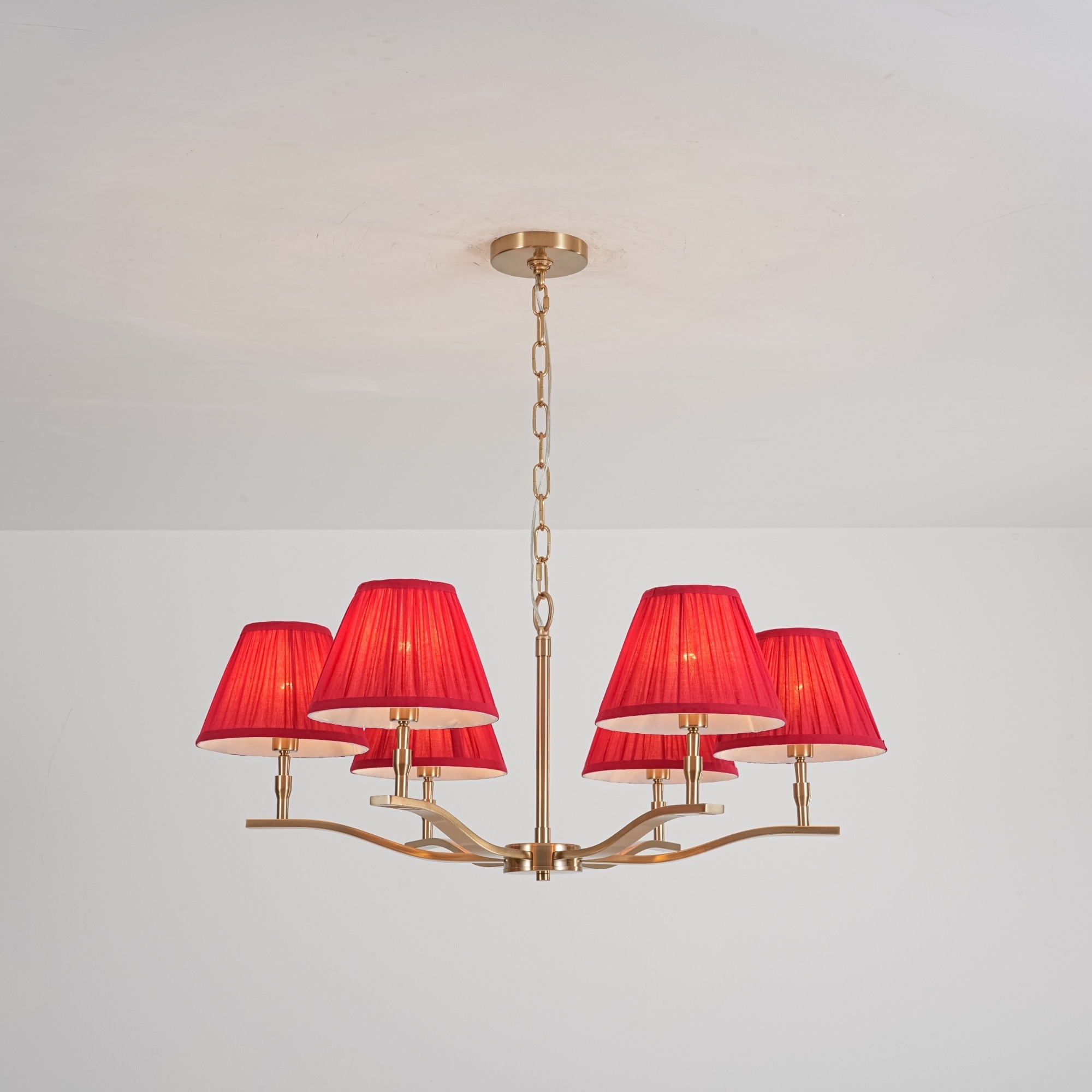 31.5" W Mid-Century Traditional Brass Finish Dimmbale Chandelier with Red Pleated Fabric Shades for Living & Dining Room