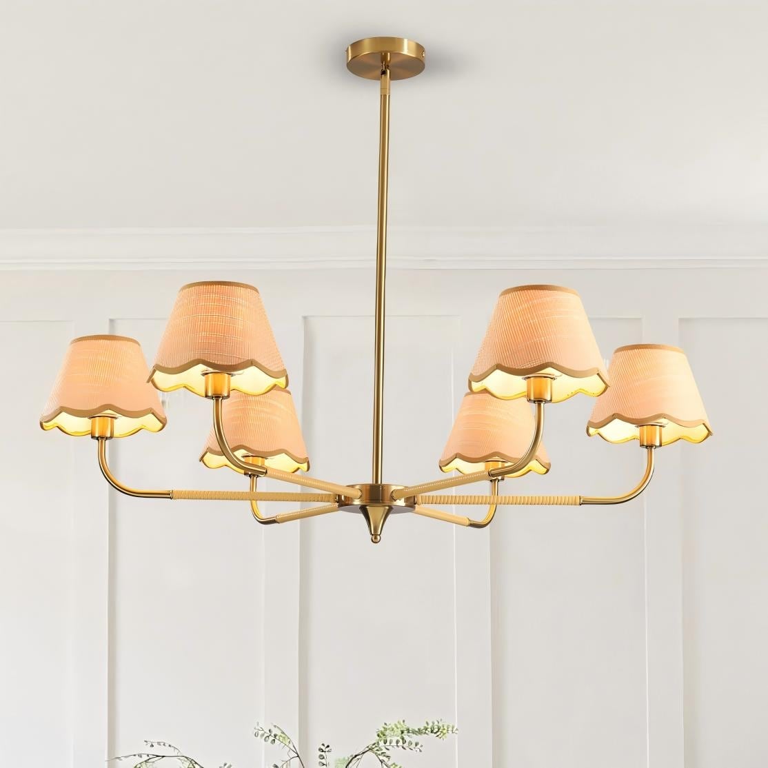 LunaDrift 38" French Gold Mid-Century Rattan Chandelier ,6-Light Hand-Woven Hanging Pendant for Dining Room,Living Room