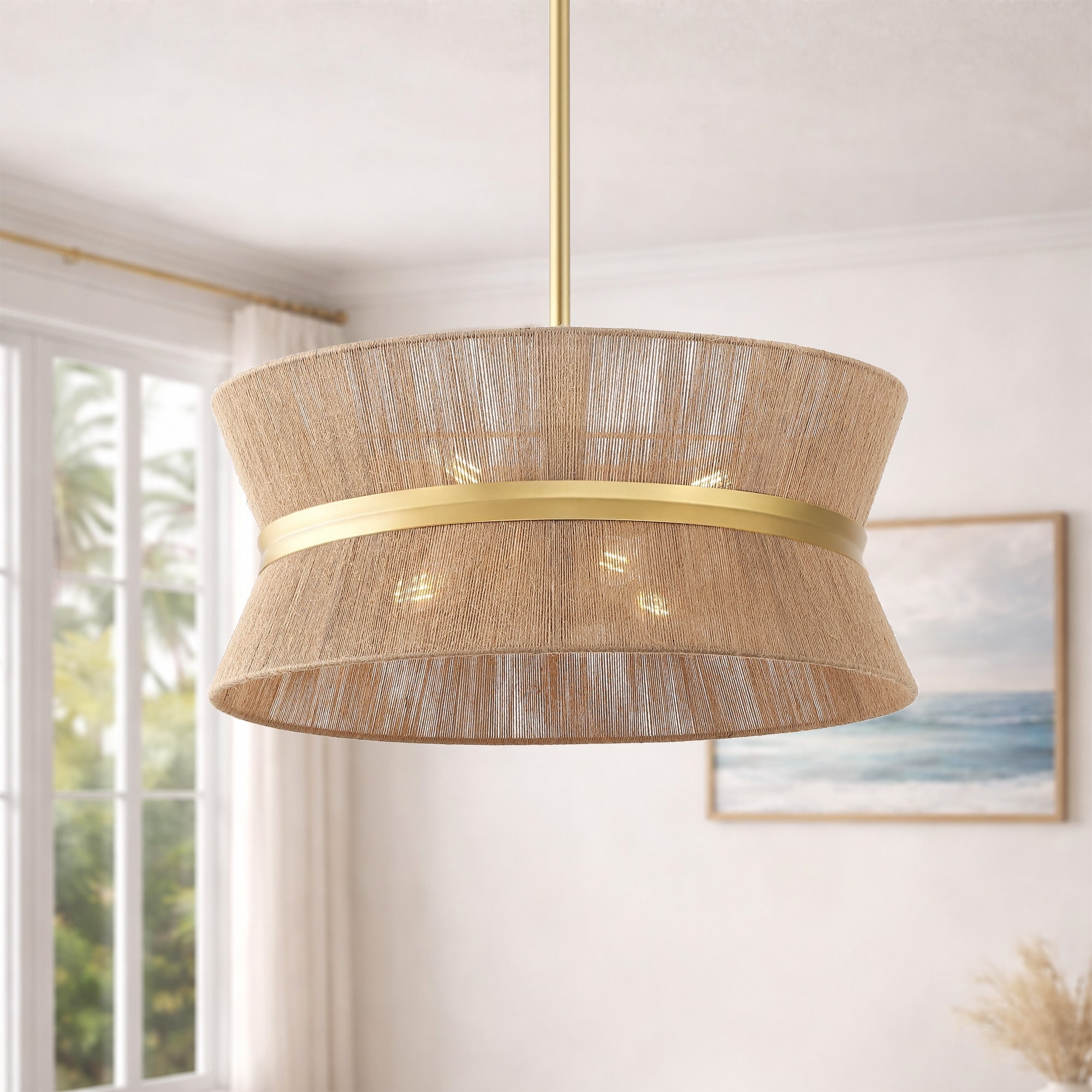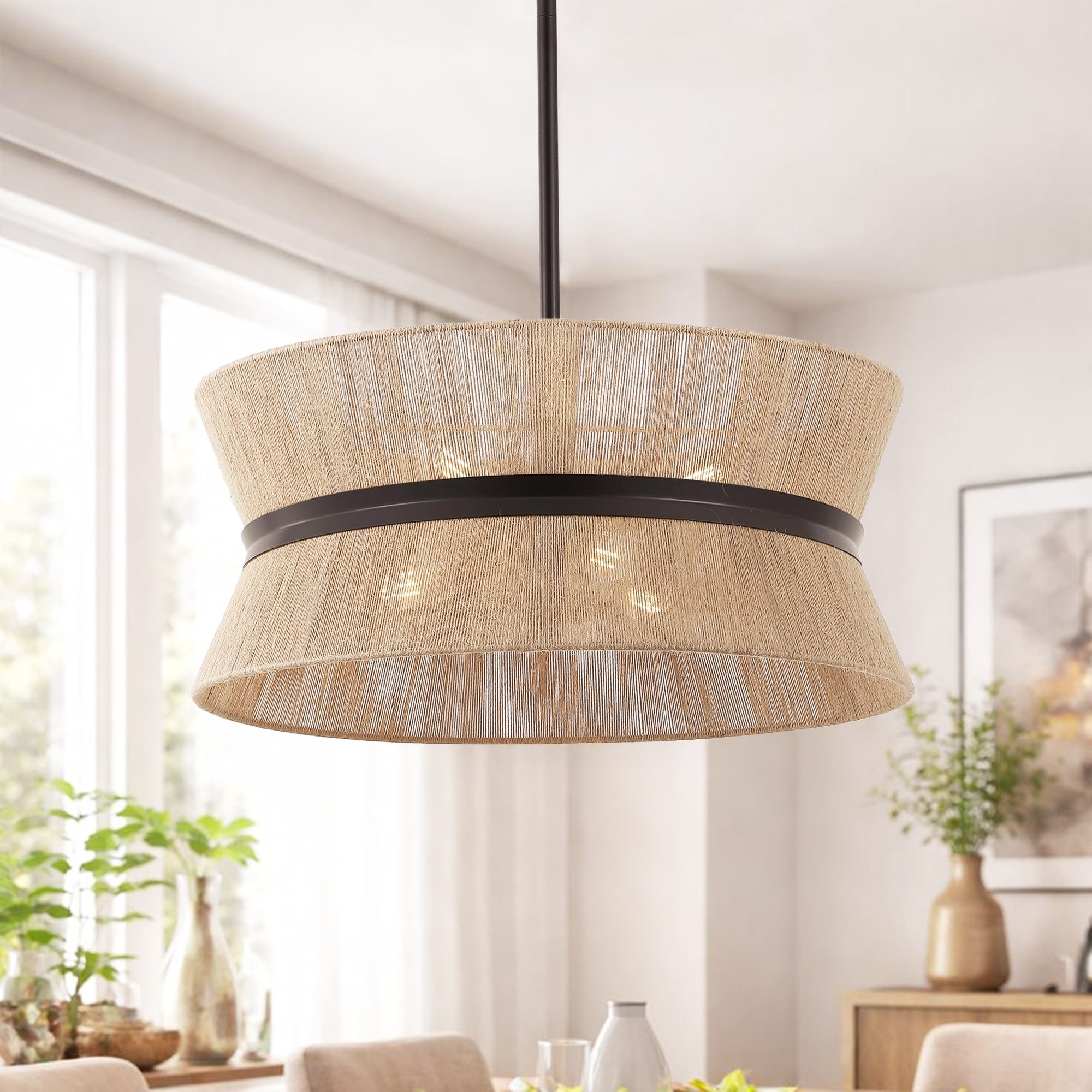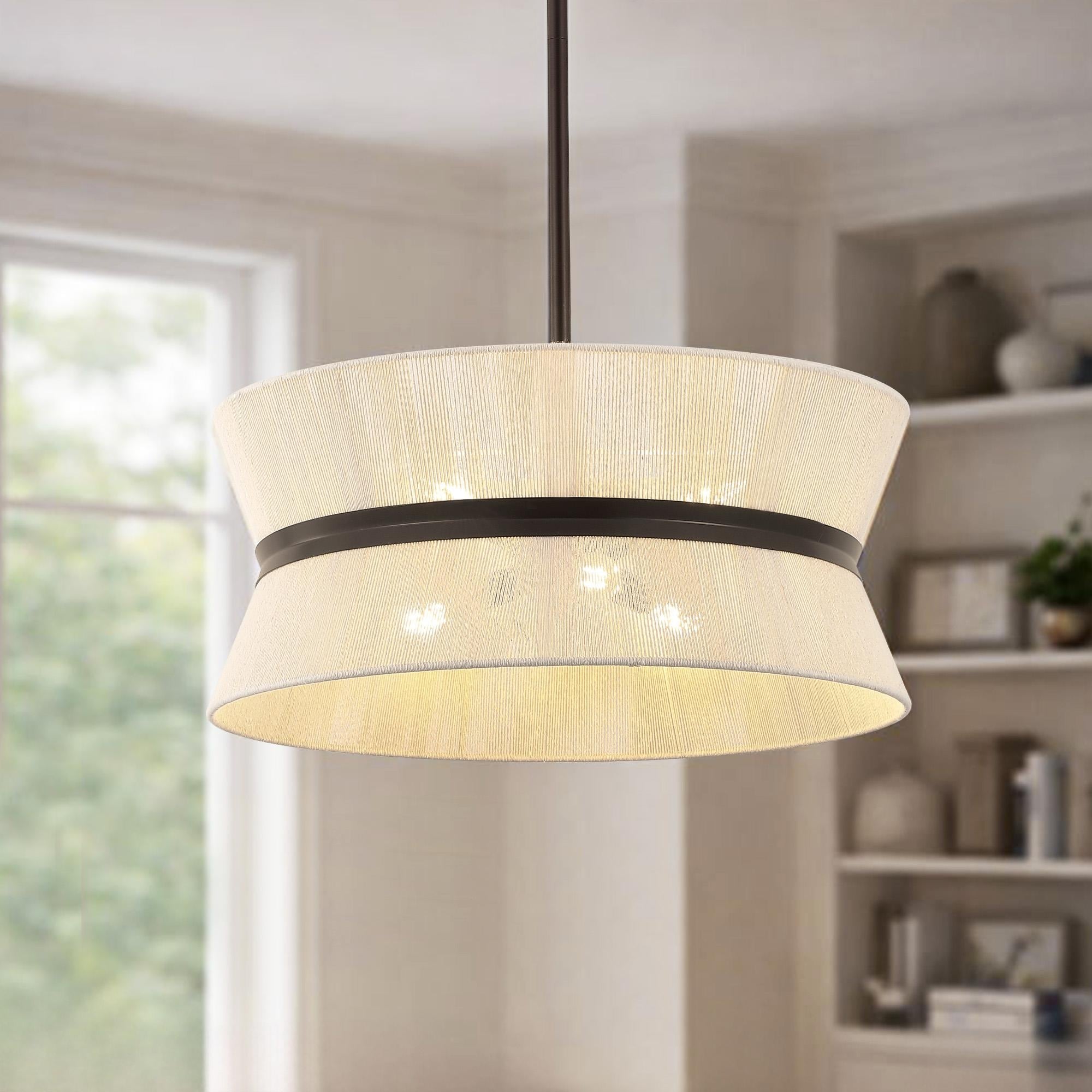 GetLedel 19.7" Modern Coastal 6-Light Rope Drum Chandelier