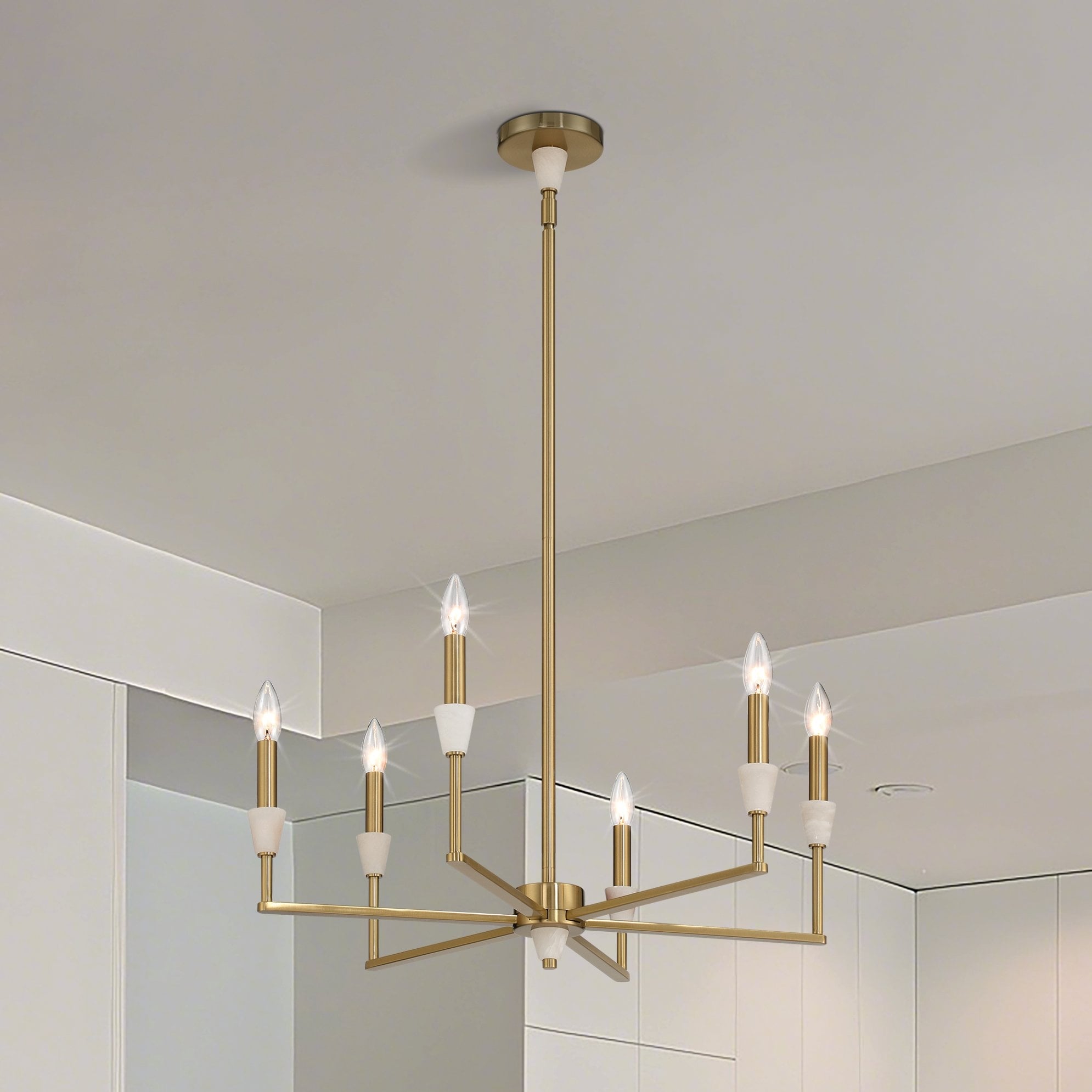 Montclair 26-inch 6-light Brushed Gold and Natural Alabaster Chandelier - L: 26" x W: 26" x H: 11" x M-H: 63"
