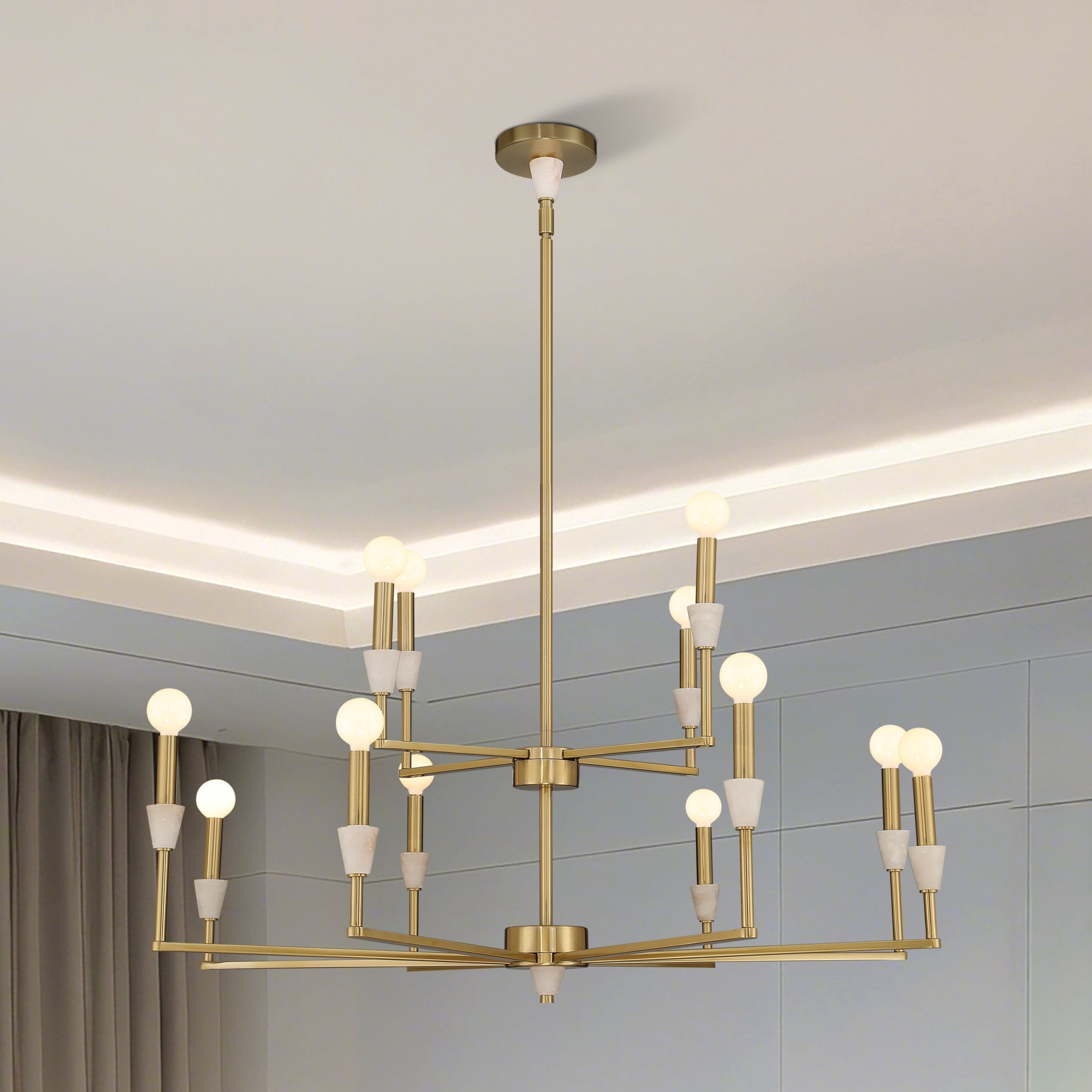 Montclair 38-inch 12-light Brushed Gold and Natural Alabaster Chandelier - L: 38" x W: 38" x H: 20.25" x M-H: 71.25"