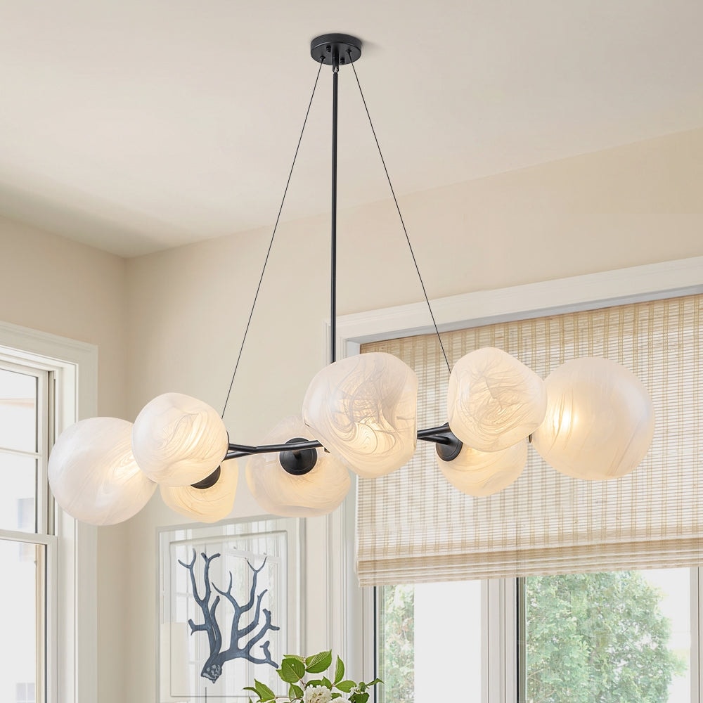Glam 8-Light Branch White Misty Glass Globe Island Pendant