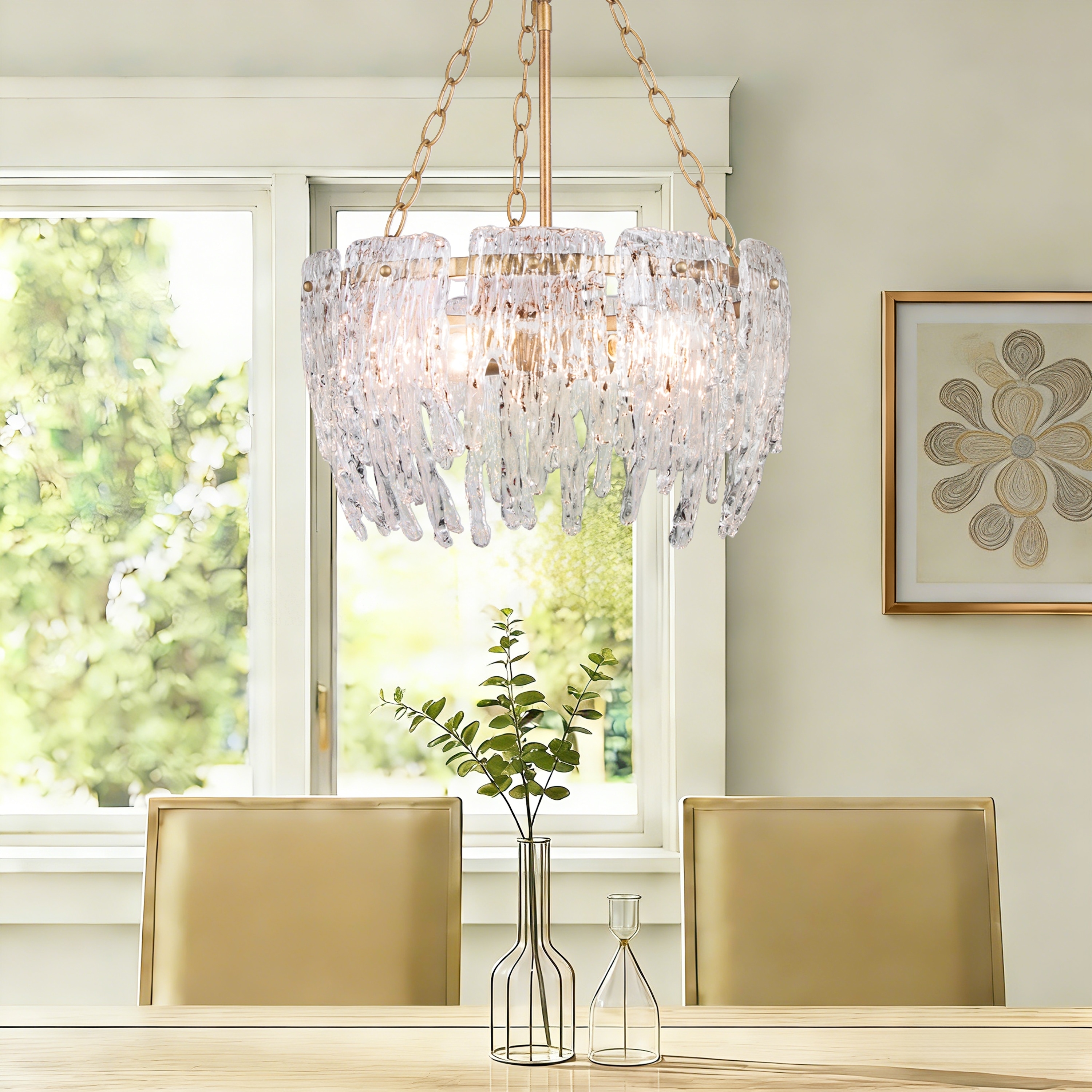 Modern 4-Light Gold Drum Textured Glass Chandelier for Dining Room