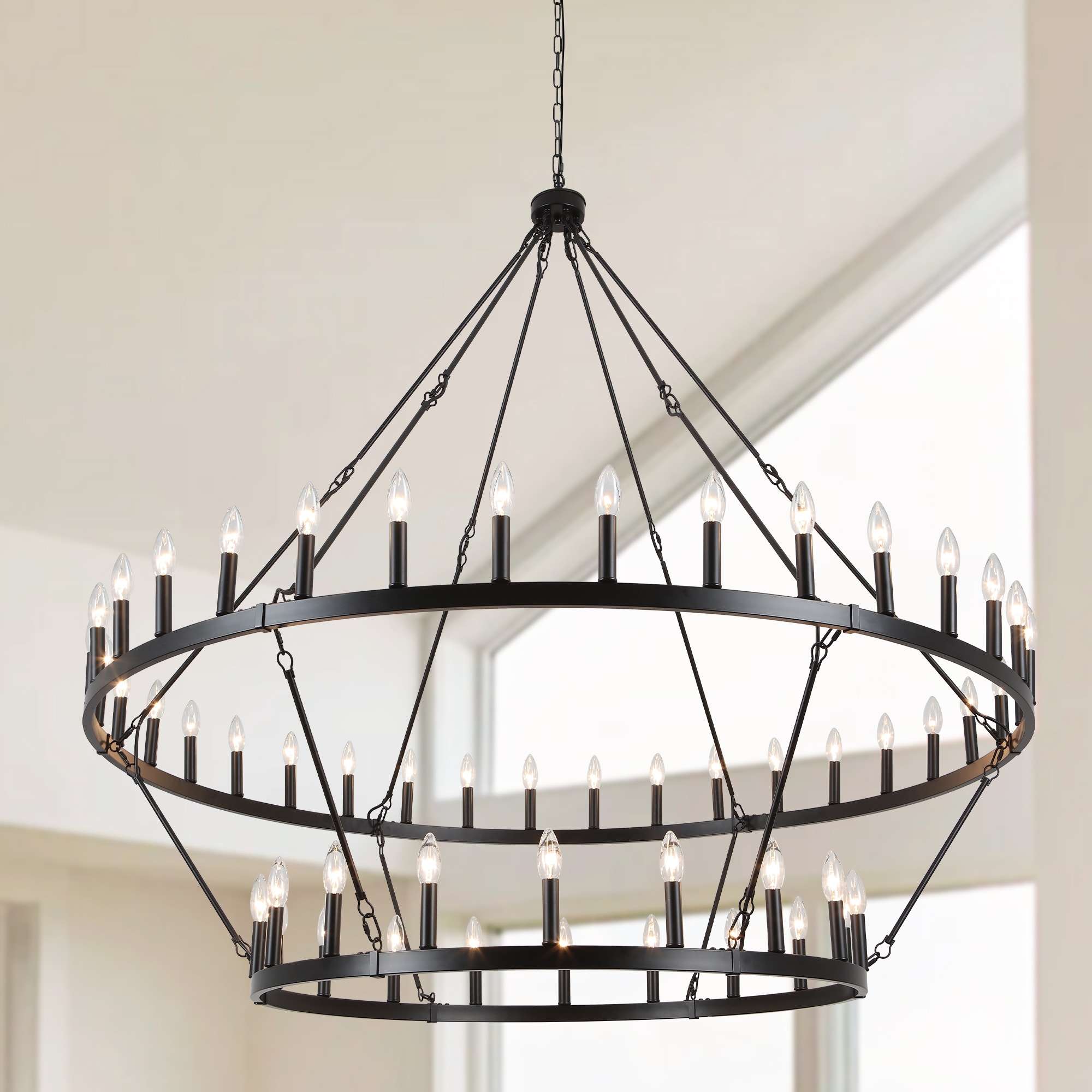 Large Farmhouse 36+18-Light 2-Tiers Wagon Wheel Chandelier
