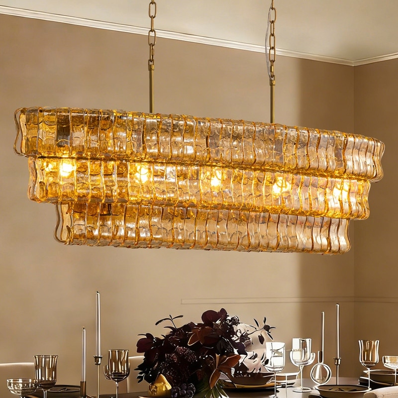 39" Rectangular Water Ripple Glass Chandeliers for Dining Room