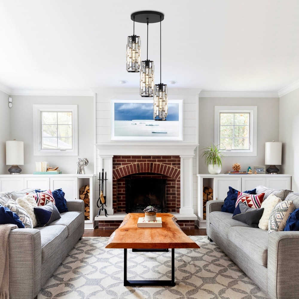 3-Light Chandelier for Bedroom Kitchen Dining Room with Crystal Shaded
