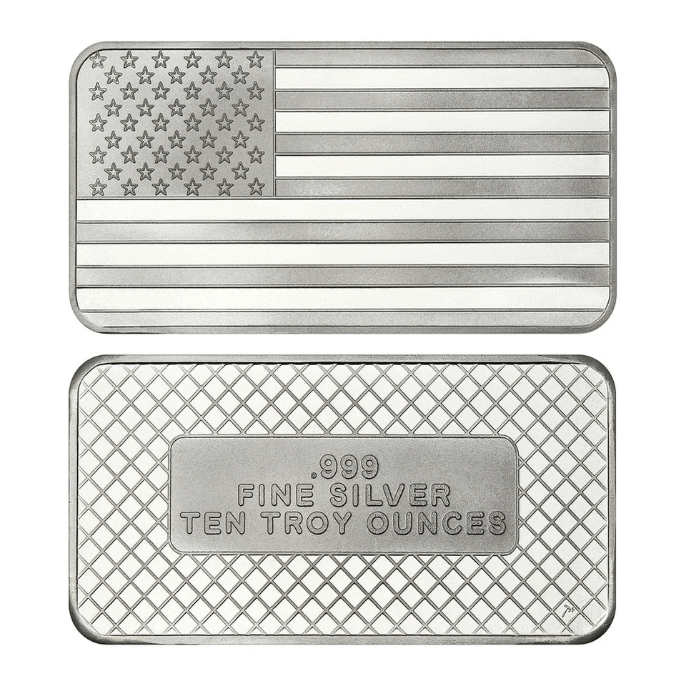 Sealed 10 Oz Fine Silver BarAmerican Flag Design For Collectors & Investors Sealed 10 Oz Fine Silver BarAmerican Flag Design For Collectors & Investors