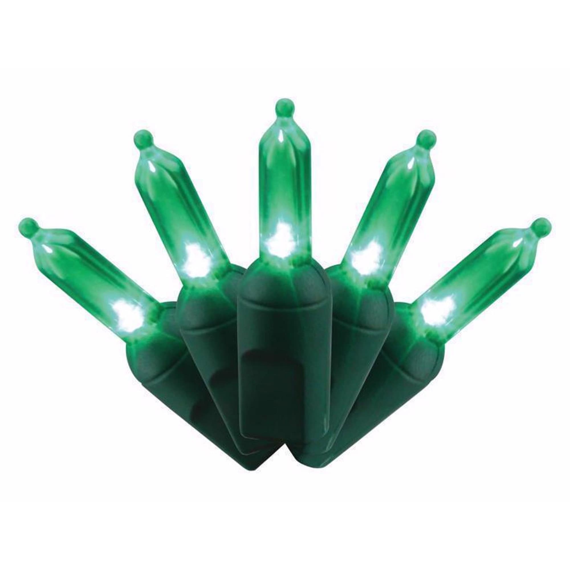 100 Light LED Coaxial Christmas Mini Light Set, Warm White, Green Wire, 50’ - Power Connector