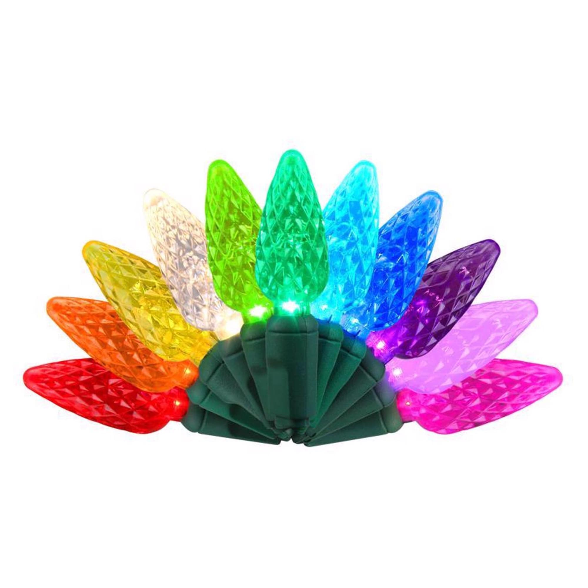 25 Foot C7 LED Ceramic Outdoor Christmas String Light Set, Multicolor, Green Wire