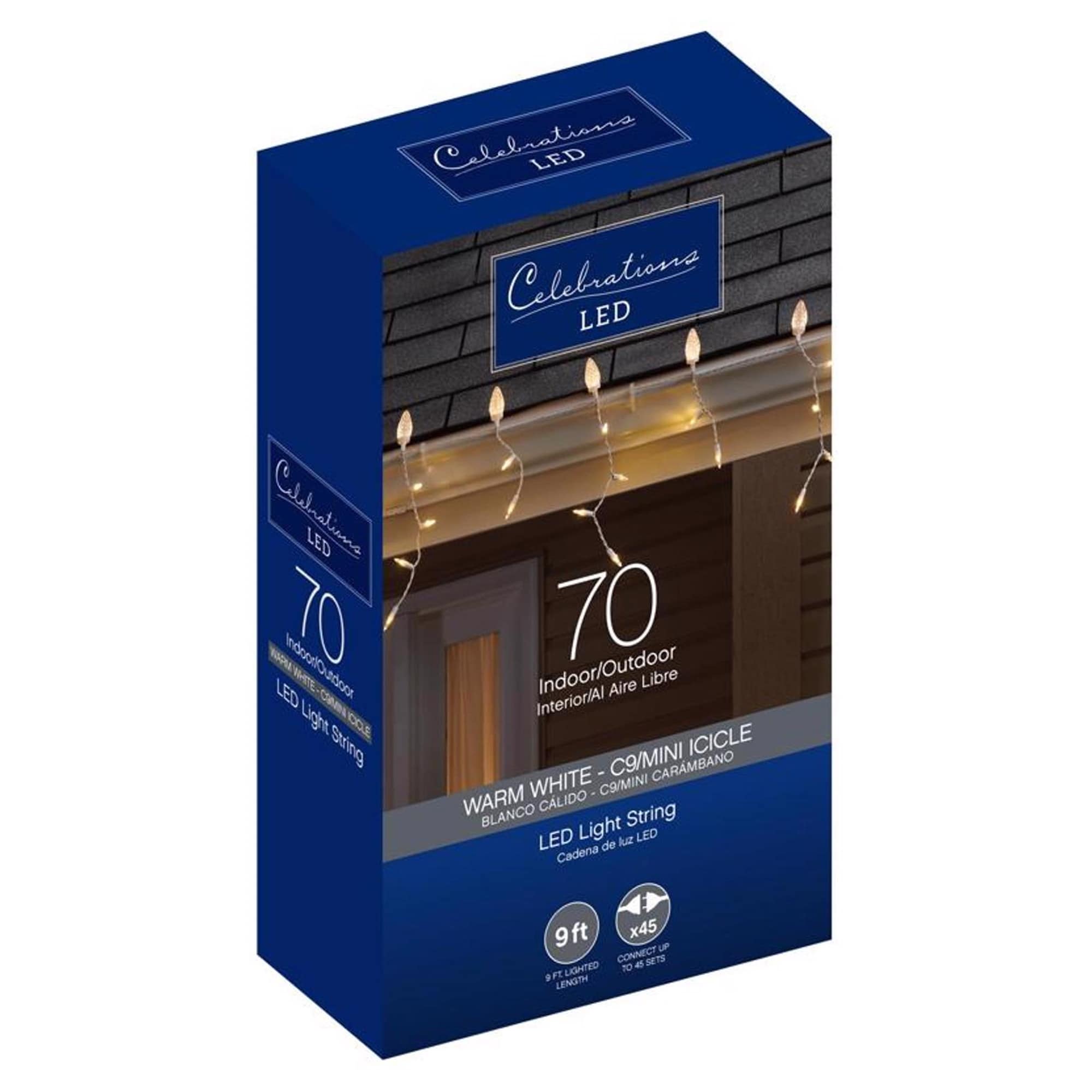 Celebrations Blue LED C9 Warm White 70 ct Icicle Christmas Lights 9 ft.