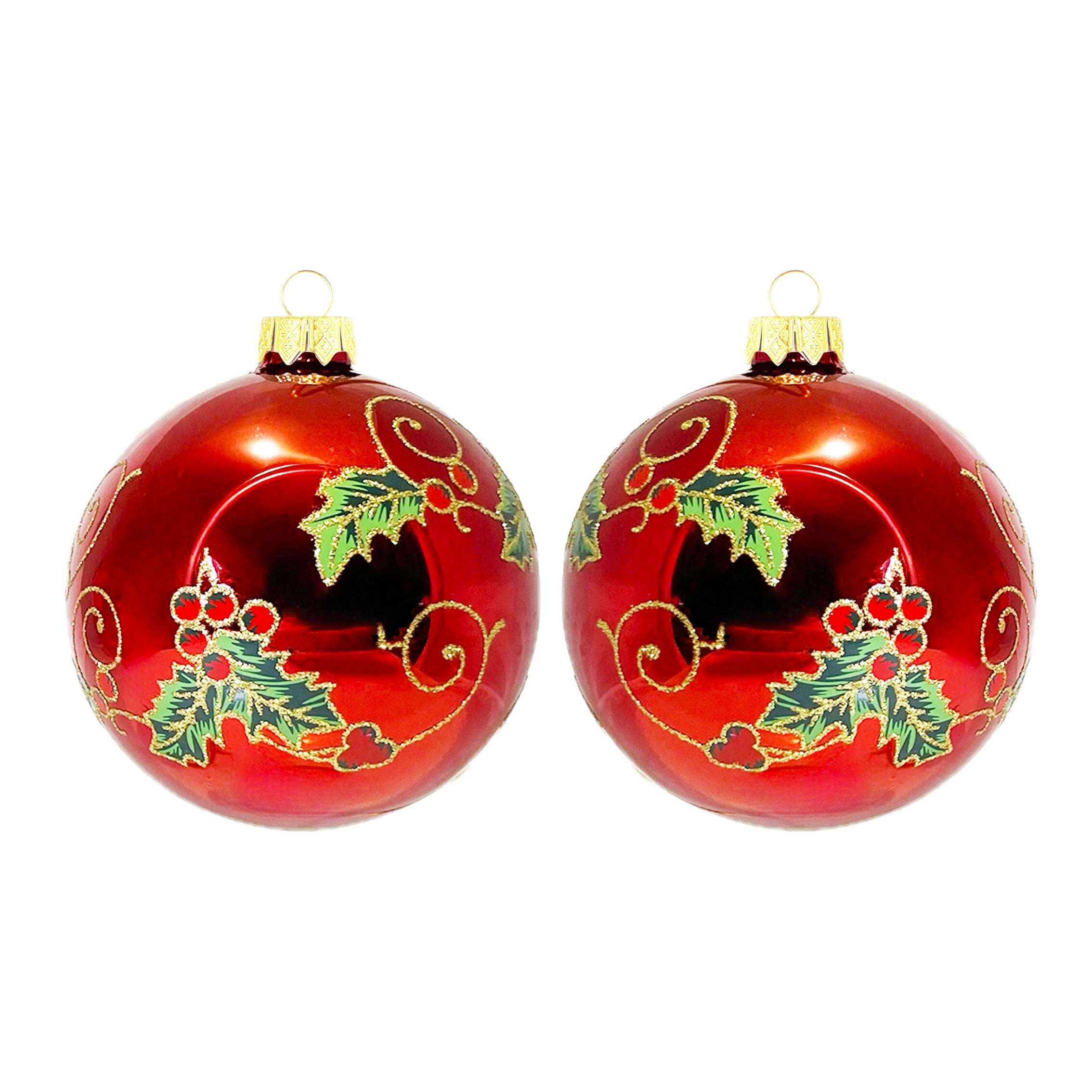 Holly Berry Glass Christmas Ornament Set of 2 - 3.1"
