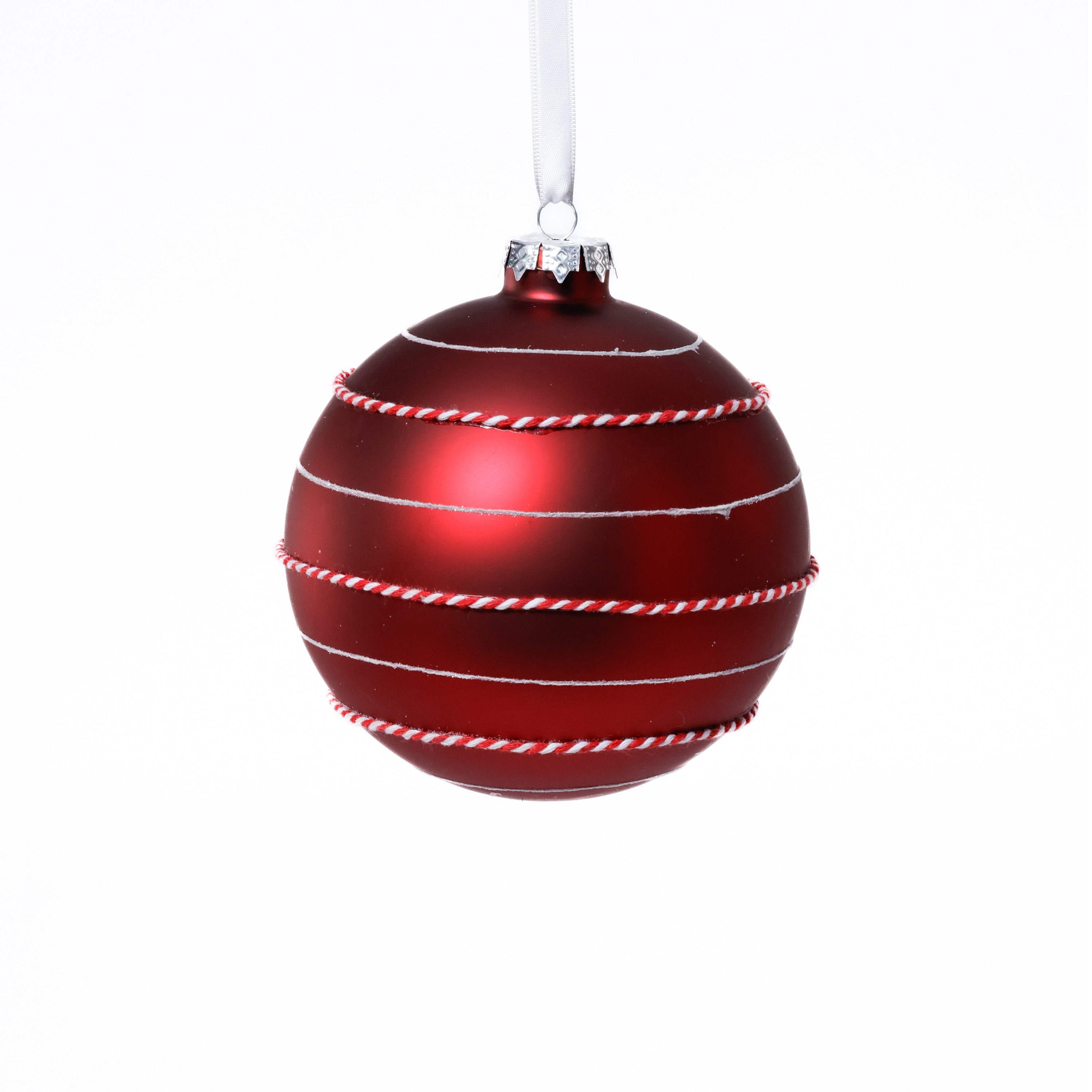 4-Piece Set Matte 4.75" Glass Ball Ornaments with White & Red Rope