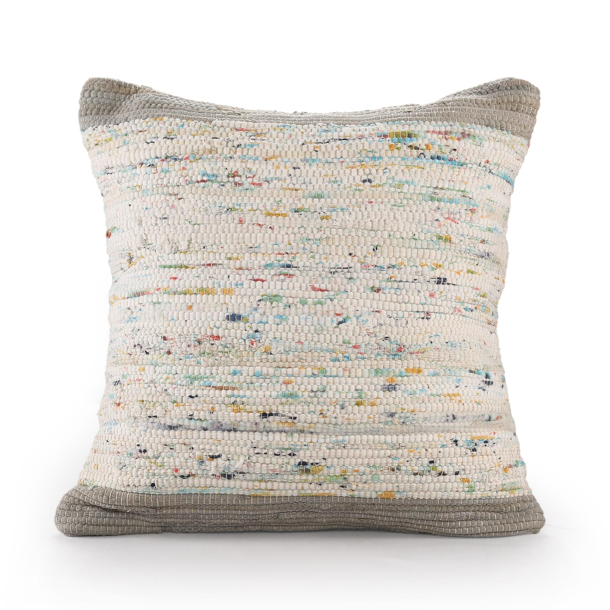 Hand Woven Abstract Square Throw Pillow - 20" - Gray and White