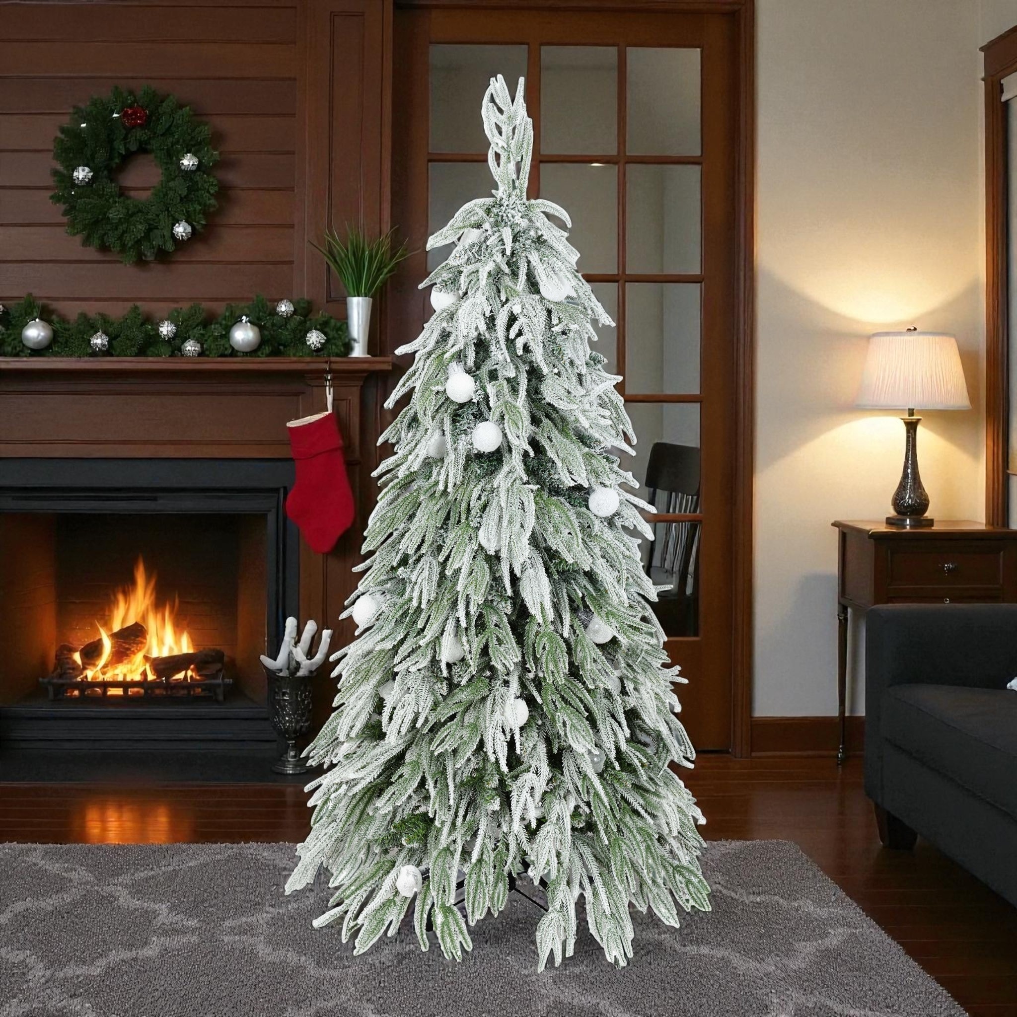 Pre-Lit Flocked Artificial Christmas Tree with Warm White Incandescent Lights