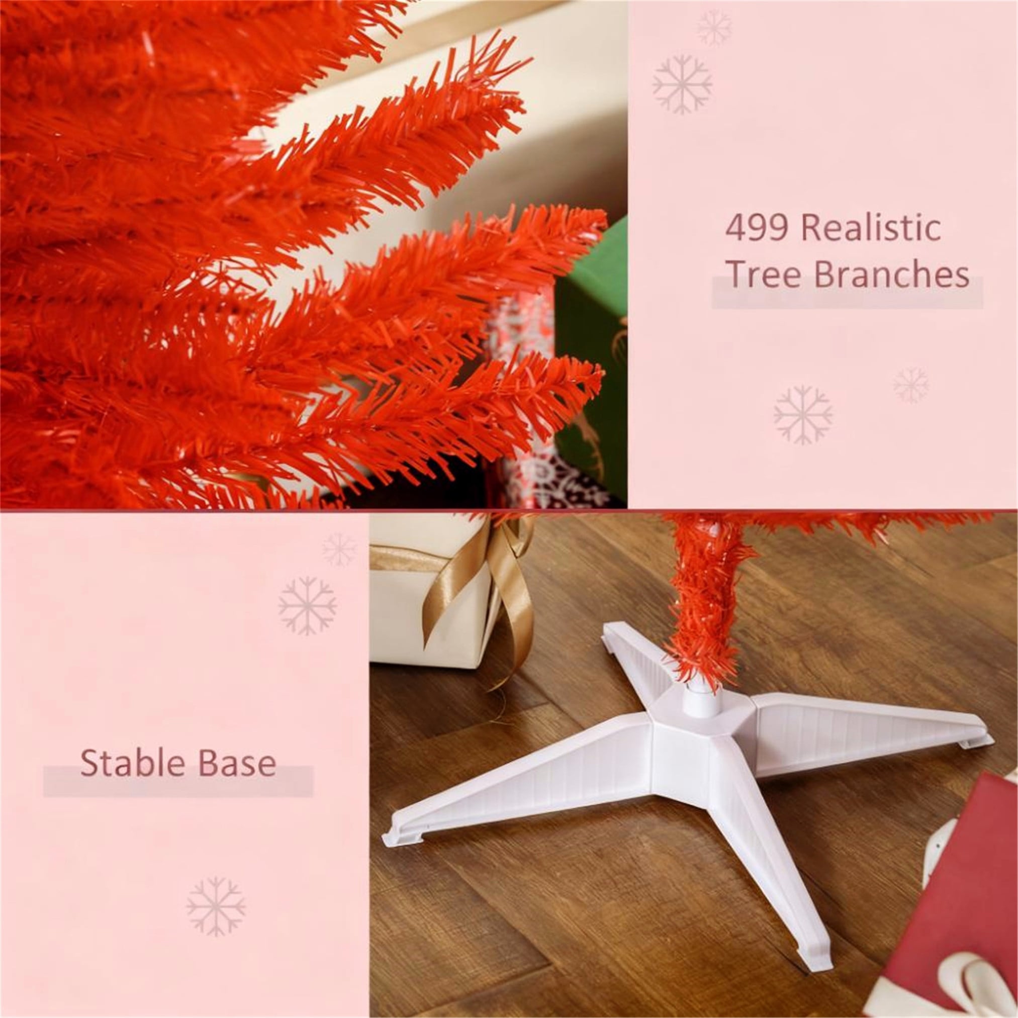Slim Red Pencil Artificial Christmas Tree with 499 Realistic Branch Tips and Sturdy Detachable Plastic Stand