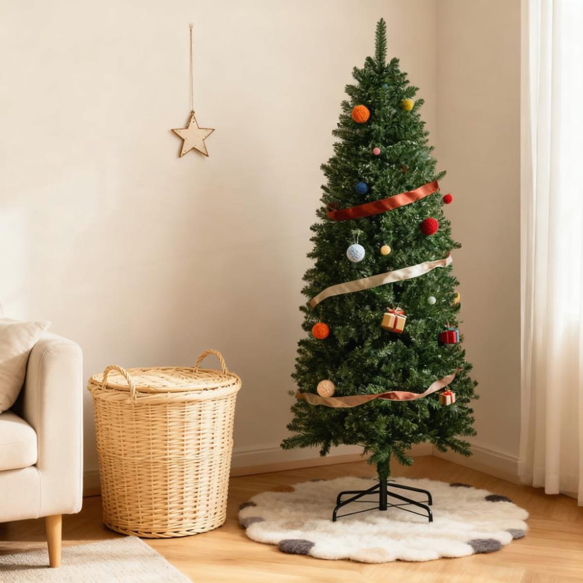 6ft artificial Christmas tree with LED energy-saving lights, including 195 pendant tree skirts and guardrails