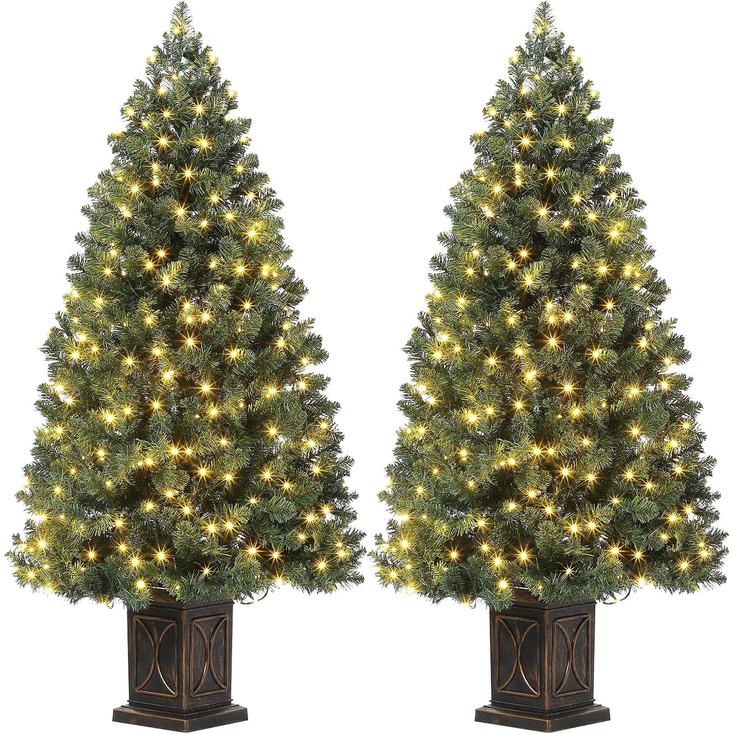 4.5ft Fiber Optic Artificial Christmas Tree with Hinged Branches & Black Base, Set of 2, for Holiday Home Décor
