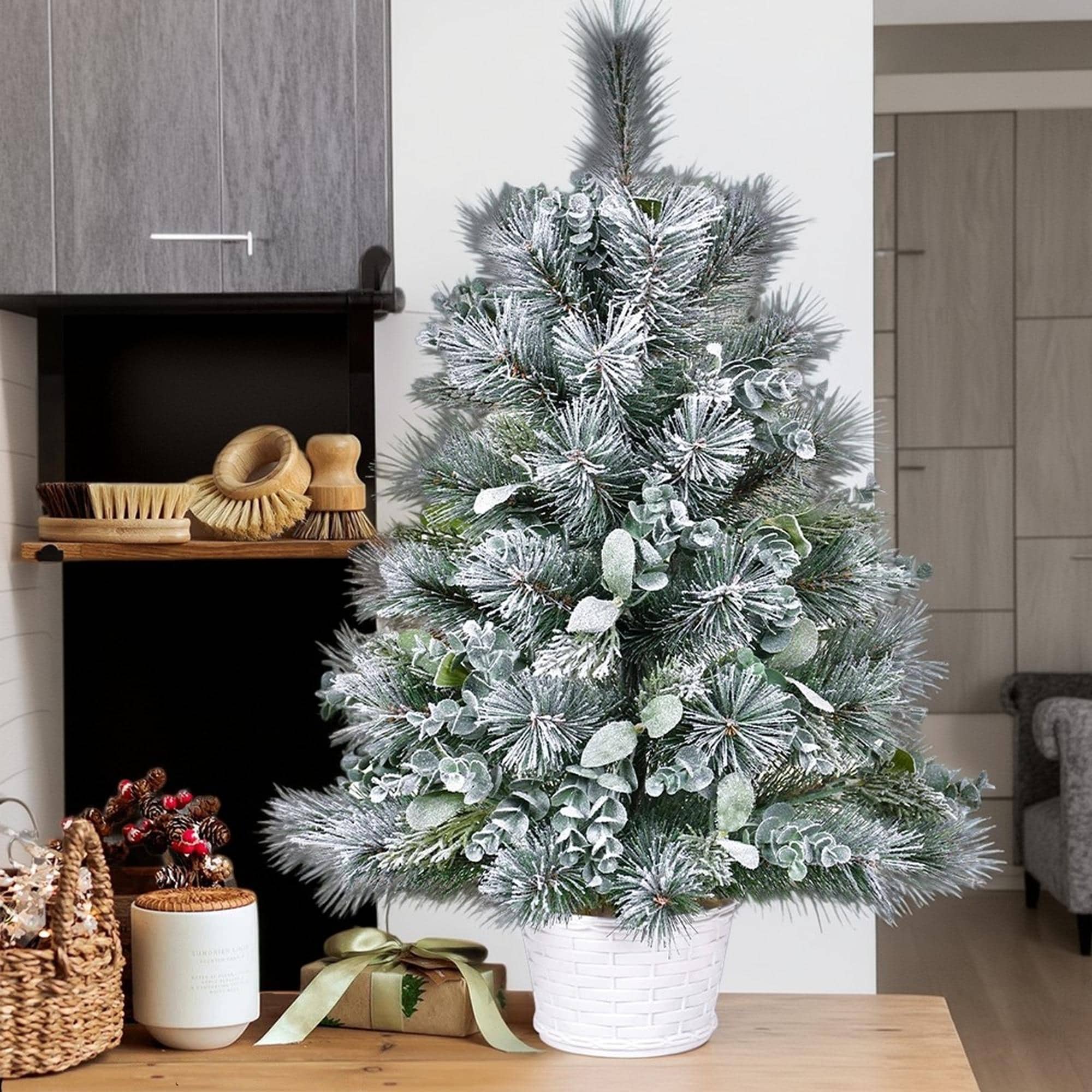 2ft Flocked Tabletop Christmas Tree with Eucalyptus & Pine Needle Accents - 2 Foot