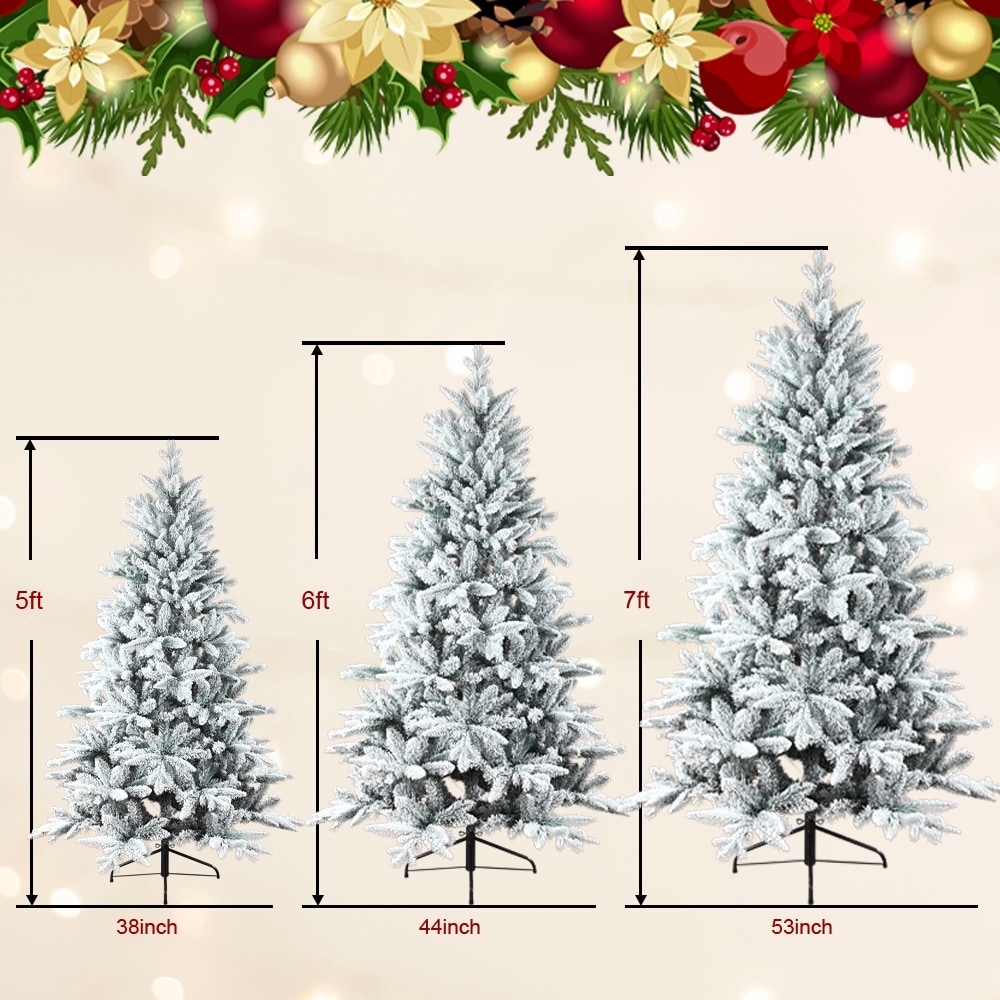 Snow Flocked Artificial Christmas Tree With 994 Tips, Foldable Metal Stand, Hinged Xmas Tree For Home, Office, Holiday, Green