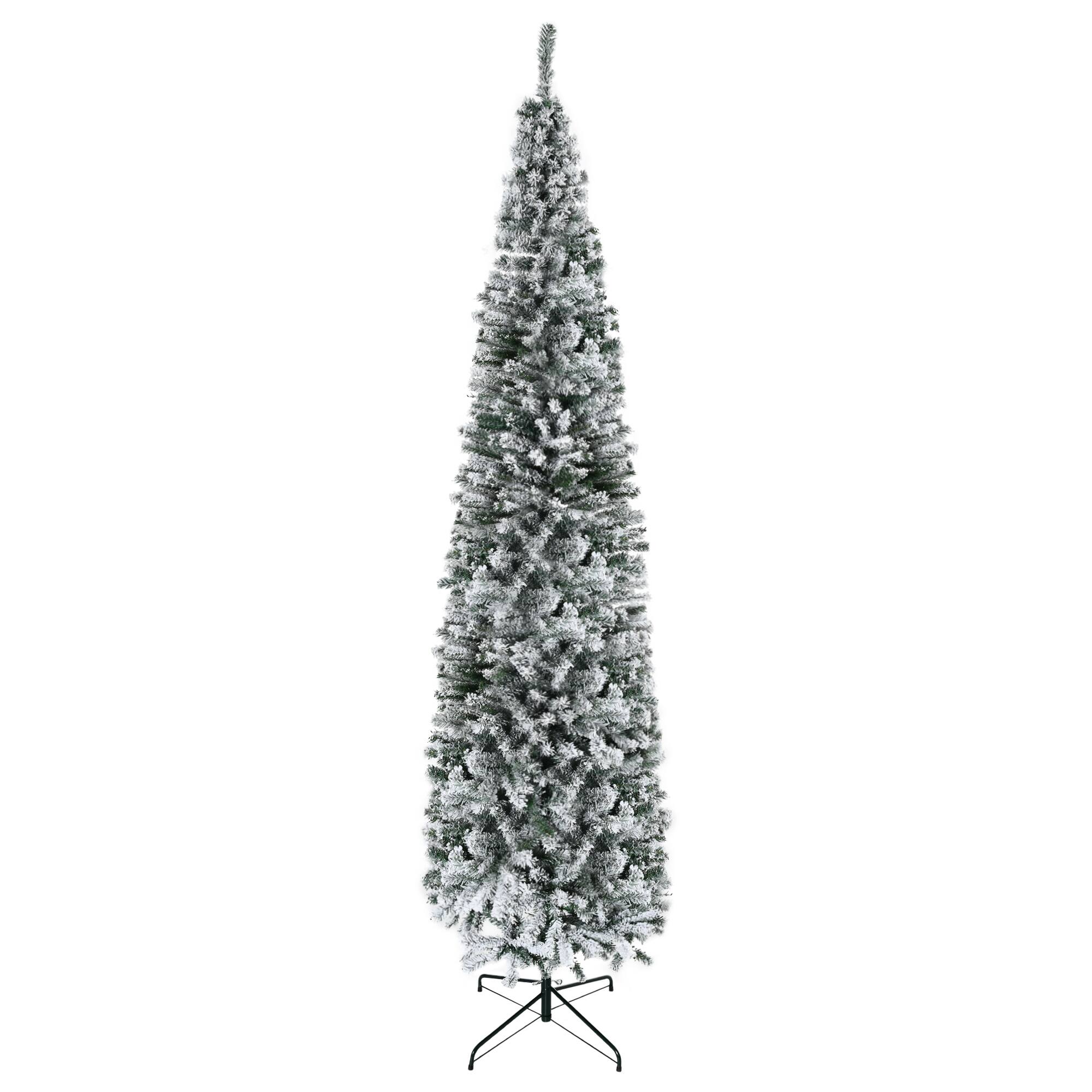 HOMCOM Unlit Snow-Flocked Slim Tree - Realistic Branches - Green