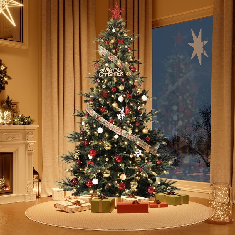 7.5 Ft Pre-lit Artificial Christmas Tree,Spruce Party Thickened PE&PVC Branch Tips Christmas Trees for Home,Office