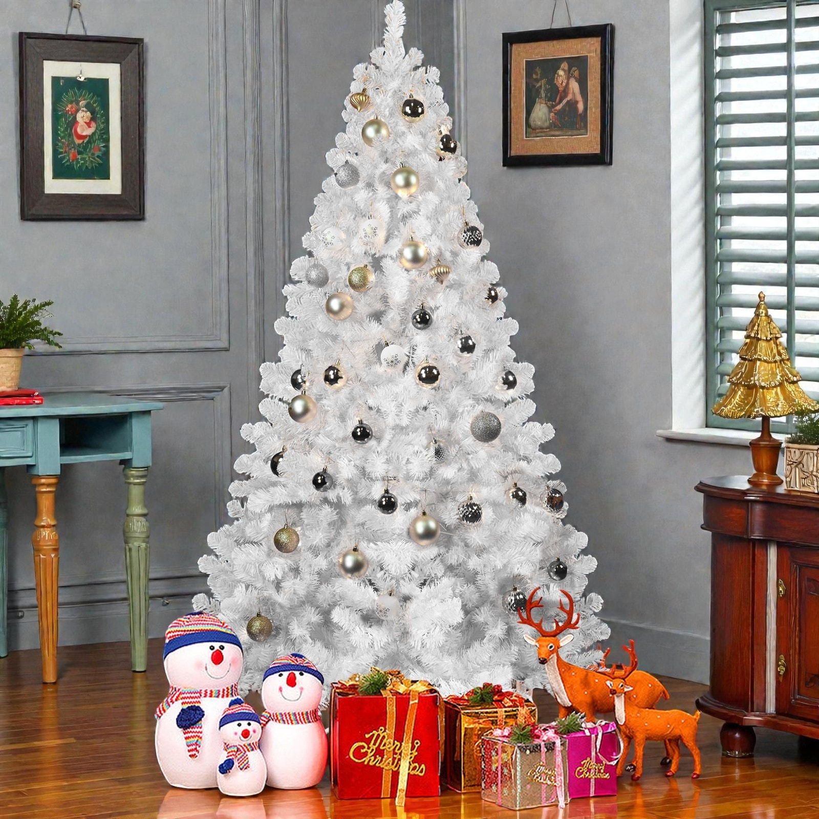 White Hinged Artificial PVC Christmas Tree with Memory Wire for Indoor Decor (Ornaments Not Included)